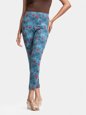 Women’s leggings in stretchable cotton knit fabric. Concealed elasticated waistline and print at hemline.