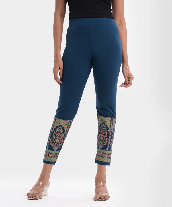 Stretchable cotton knit leggings with a clean elasticated waistline and print on the cuffs.
