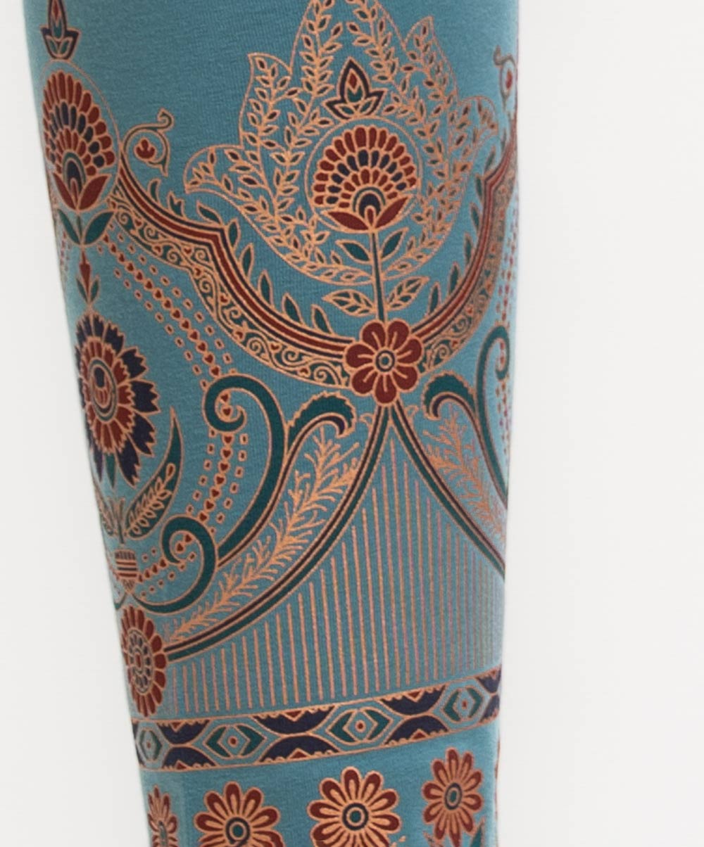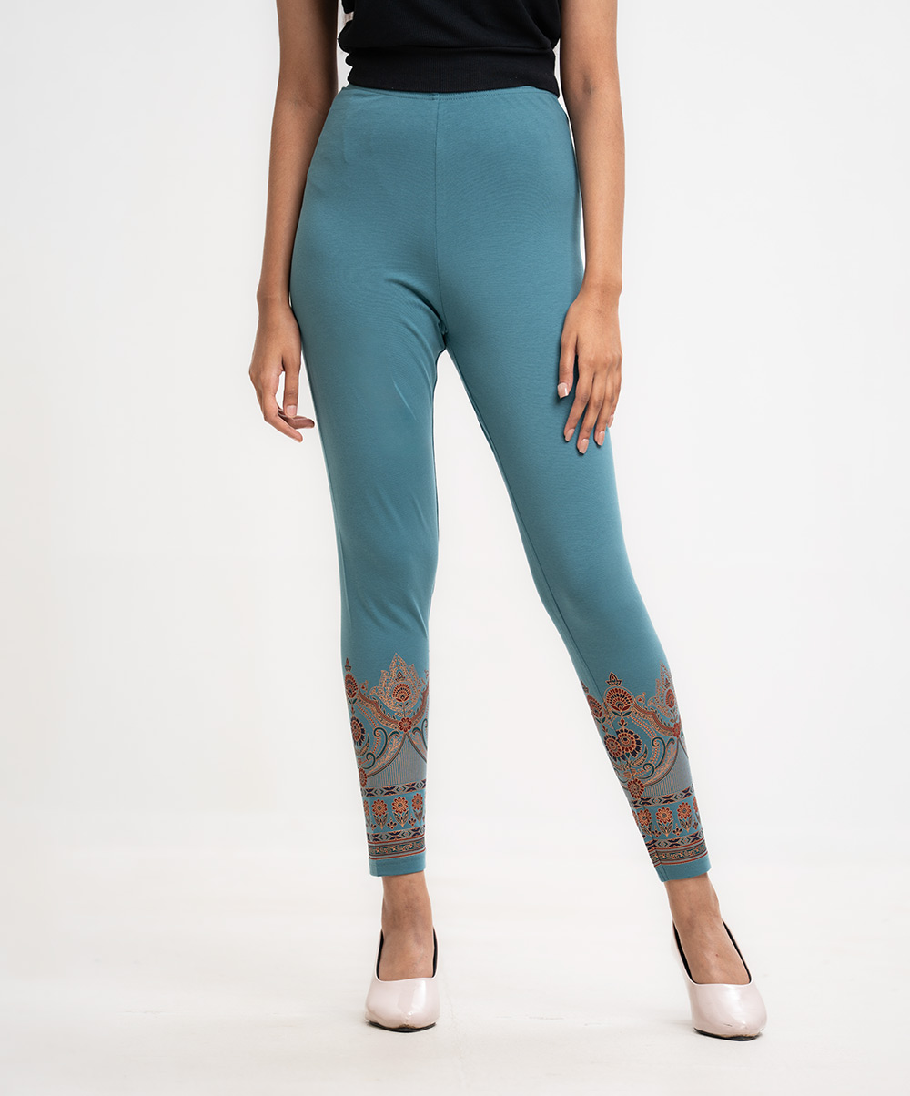 Women’s leggings in stretchable cotton knit fabric. Concealed elasticated waistline and print at cuff.