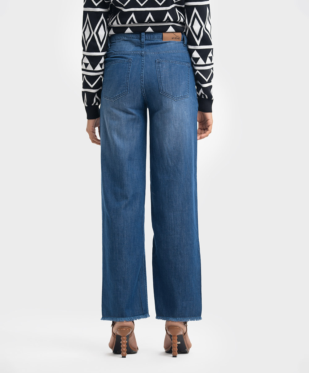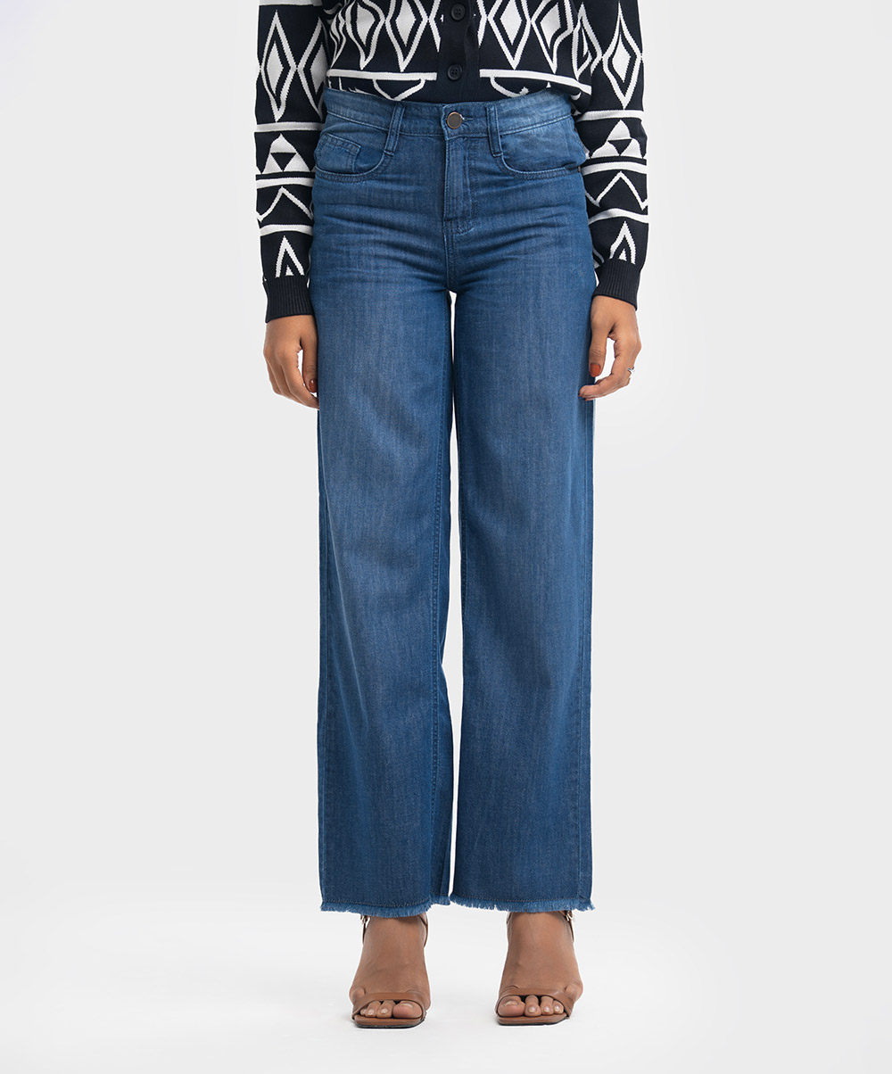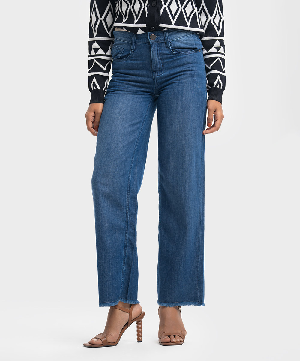 5-pocket jeans in washed cotton denim with a high waist, zip fly, and button. Wide legs, straight cut.