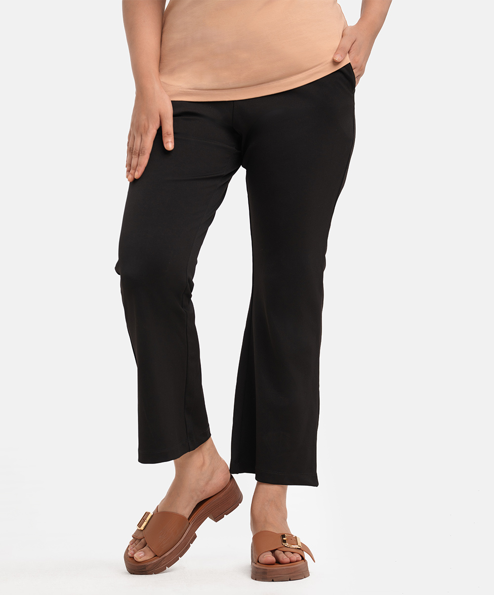 Women’s formal pants in stretched Interlock knit fabric. Conseal elastic waistline and two side pockets.