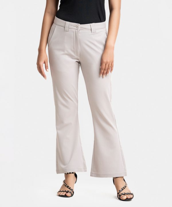 Women’s formal pants in stretched blended fabric. Conseal elastic waistline and two side pockets.