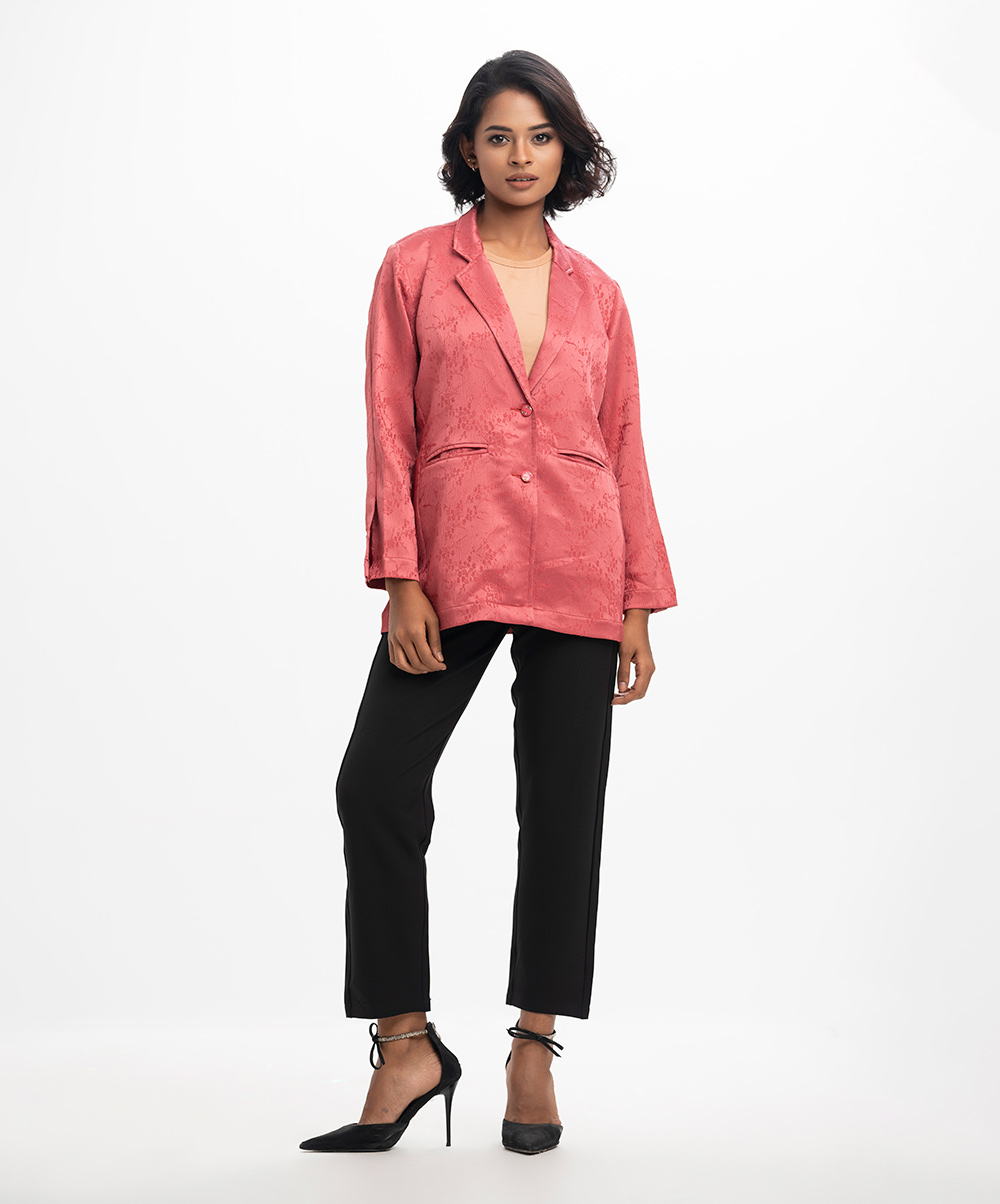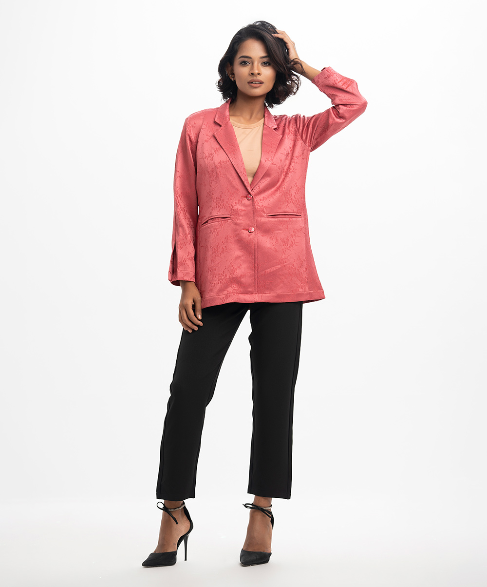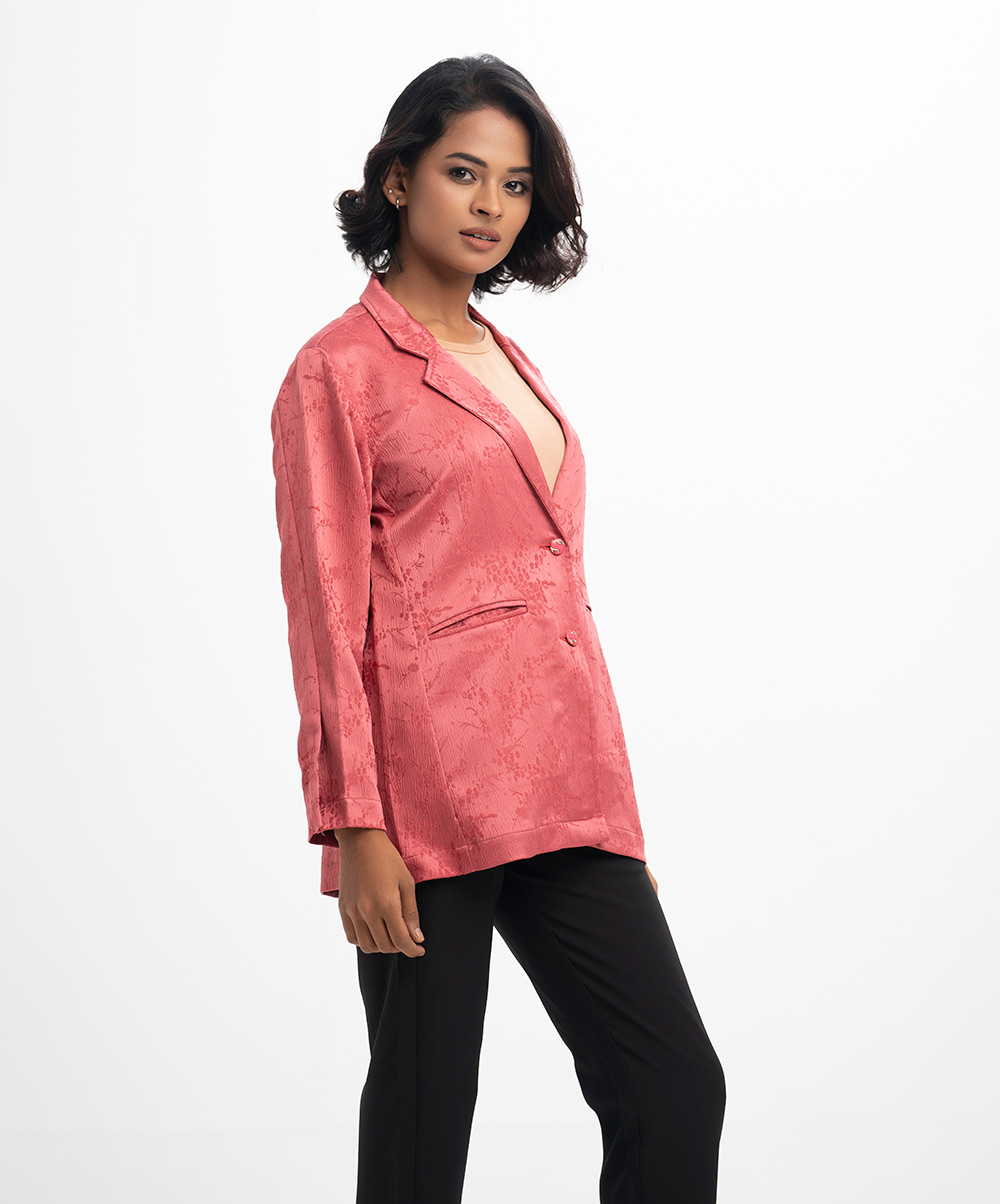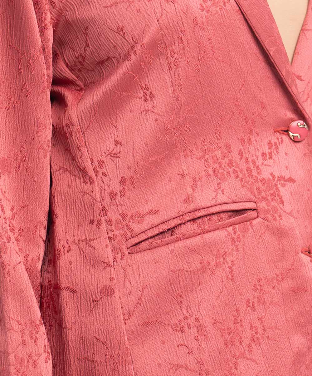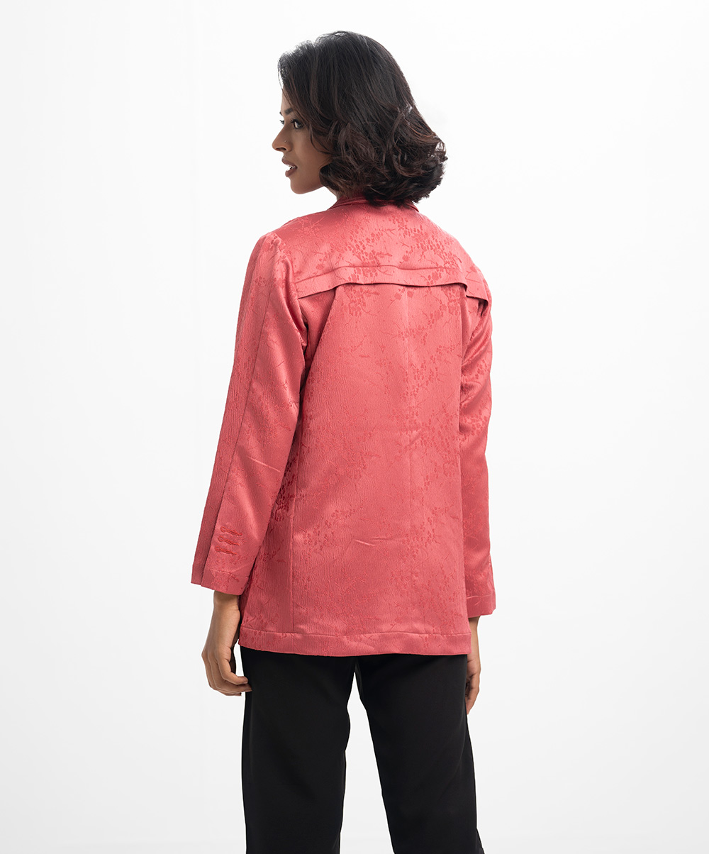 Pink Satin Jacquard Single Breasted Jacket