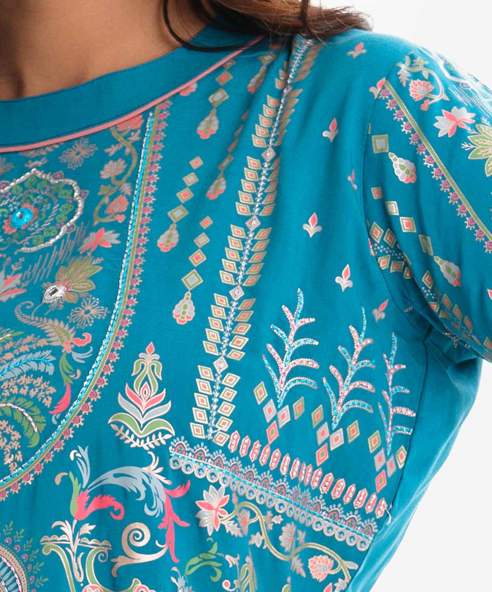 Teal Viscose Straight Kameez