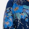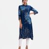 Women’s floral printed A-line long tunic in viscose fabric. Karchupi at the front. Lace work at full sleeves.