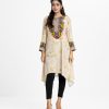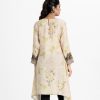 Printed A-line long tunic in blended cotton fabric. Round neck and three-quarter sleeves. Karchupi at the front.