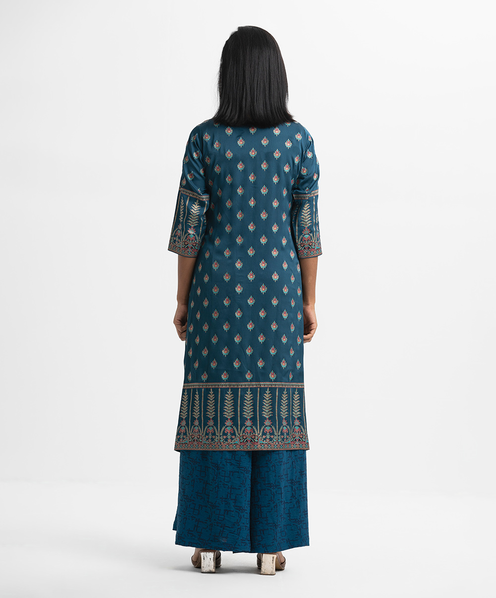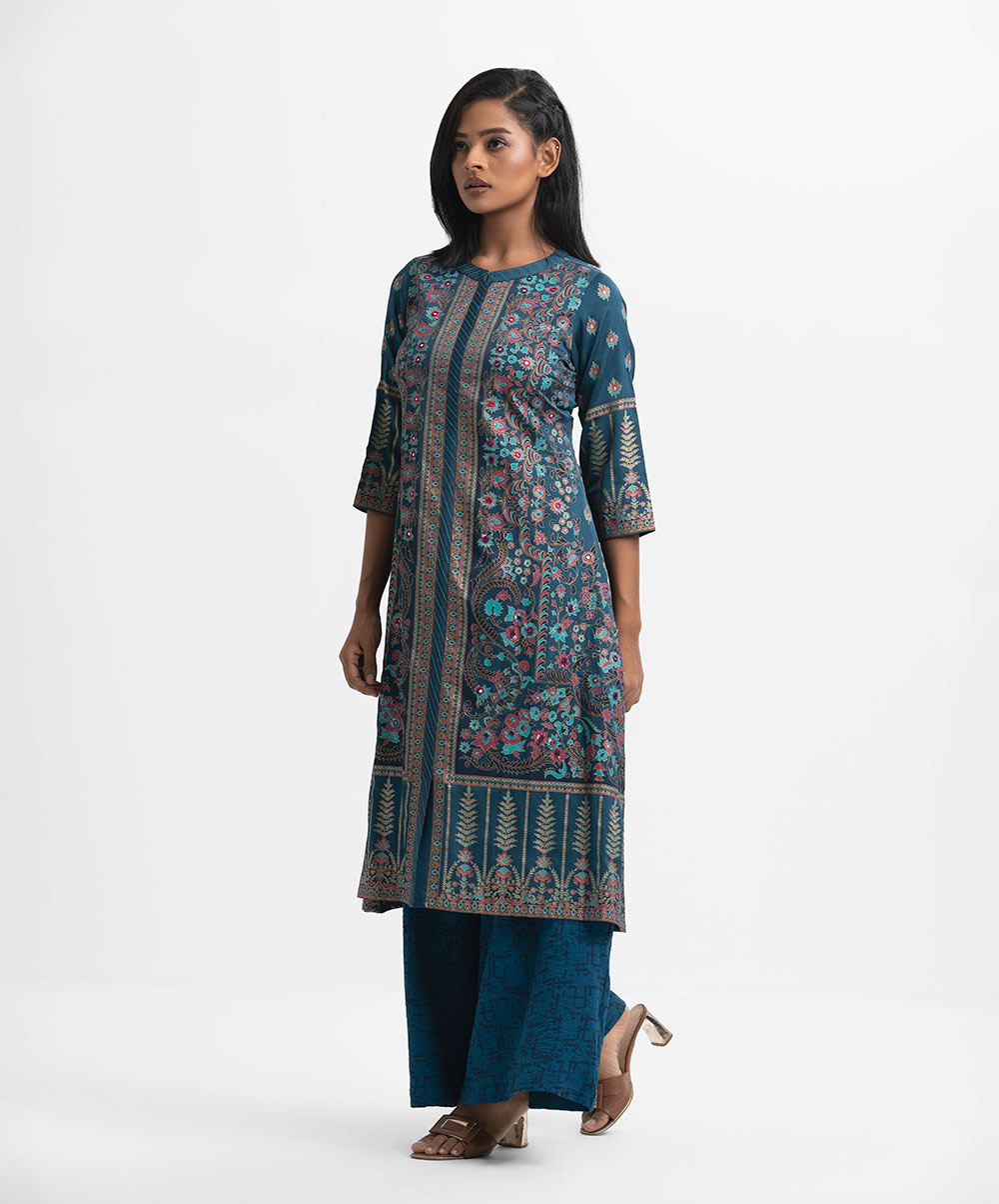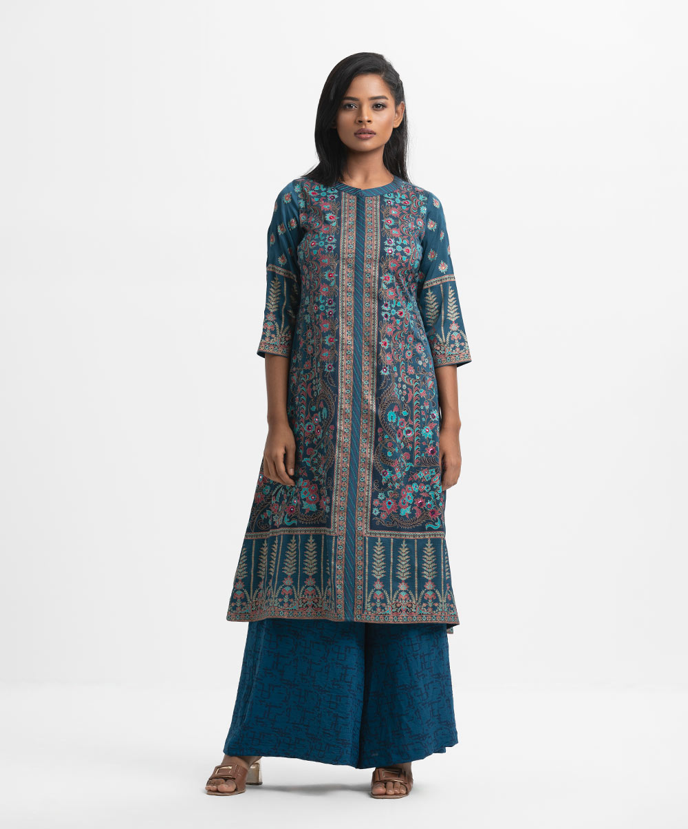 Teal Blue Crepe A-line Long Tunic