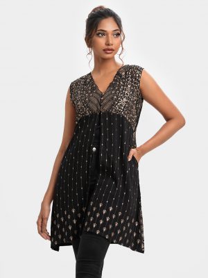 Black Viscose Sleeveless Long Shrug