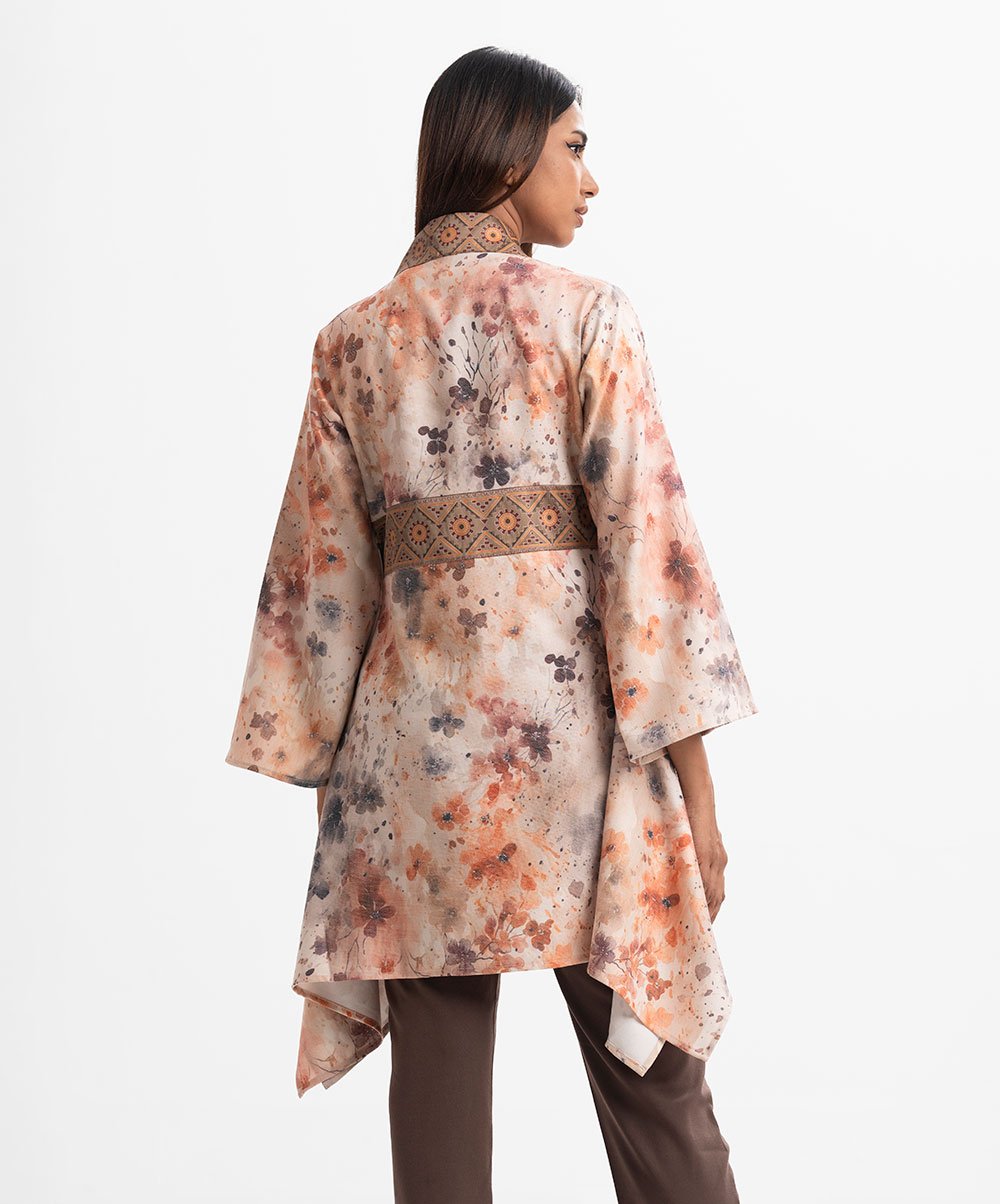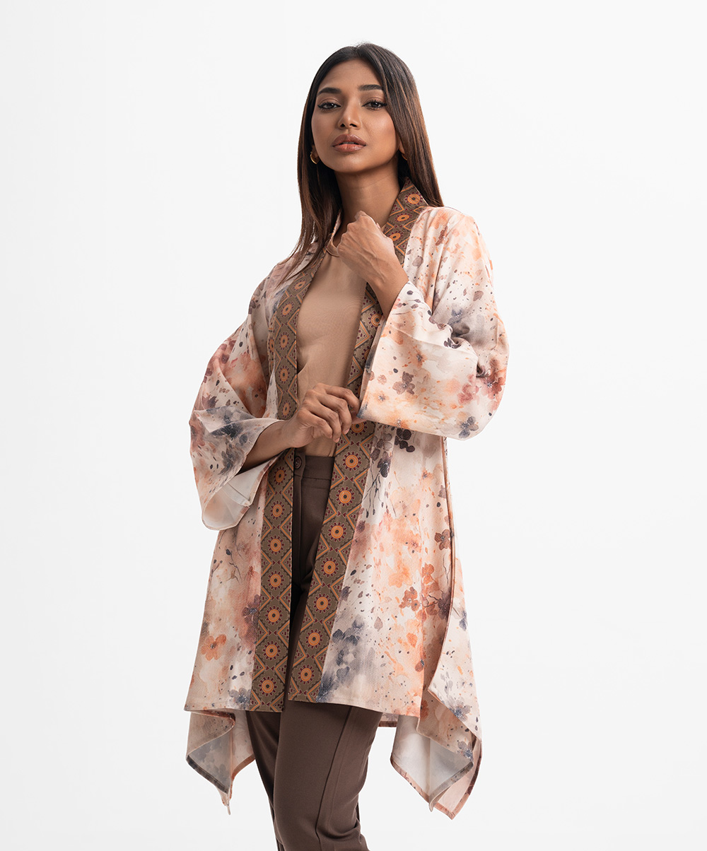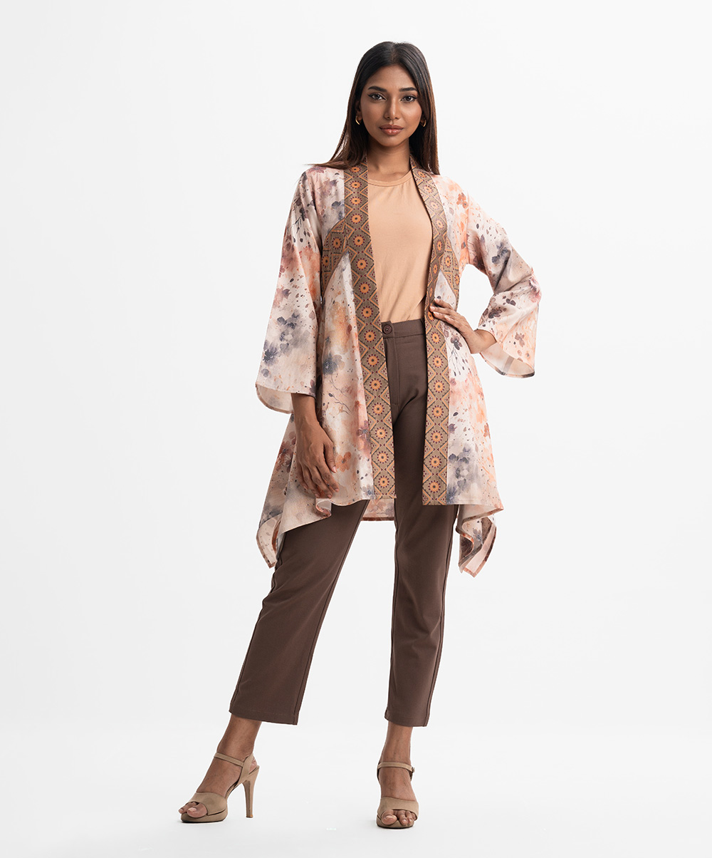 Peach Rayon-blend Open Front Shrug