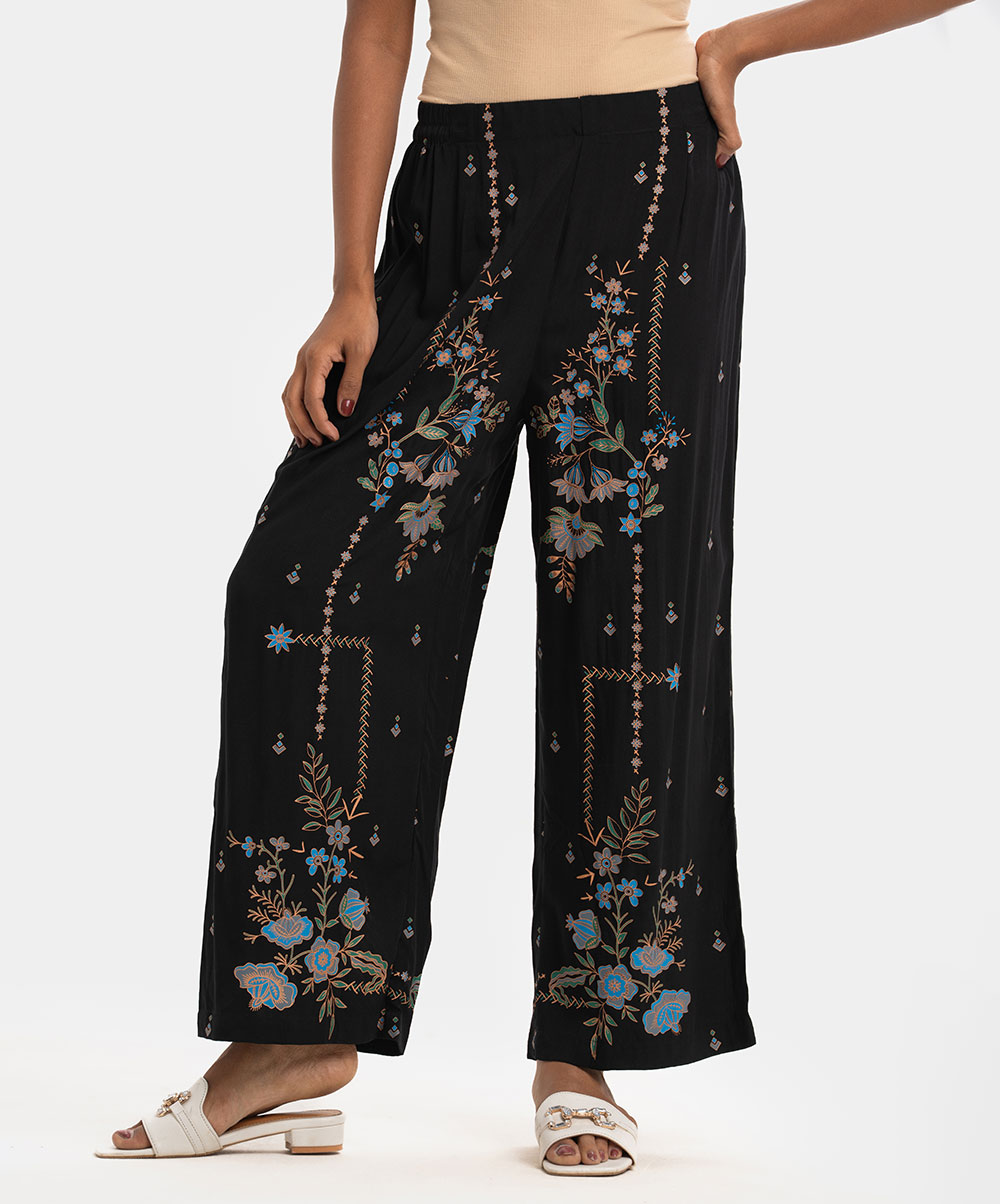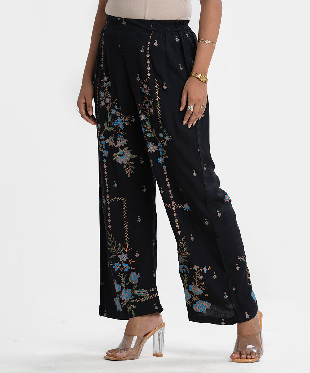 Women’s printed regular wear comfortable palazzo in viscose fabric. Concealed elasticated waistline.