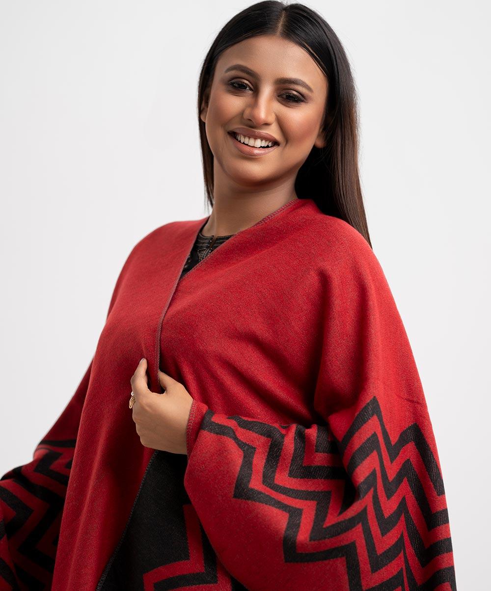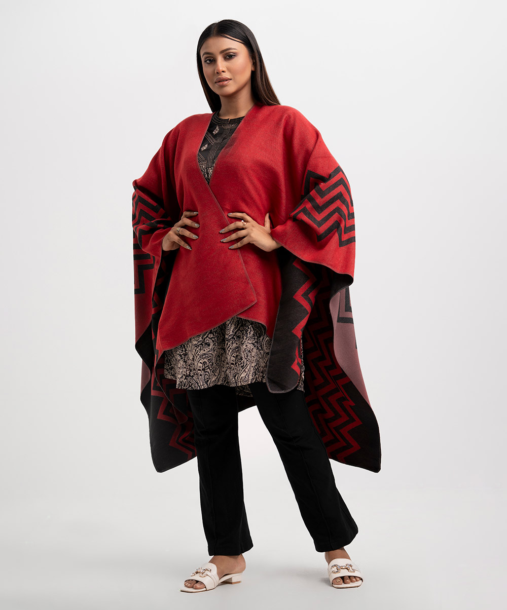 Red & Black Woolen Poncho