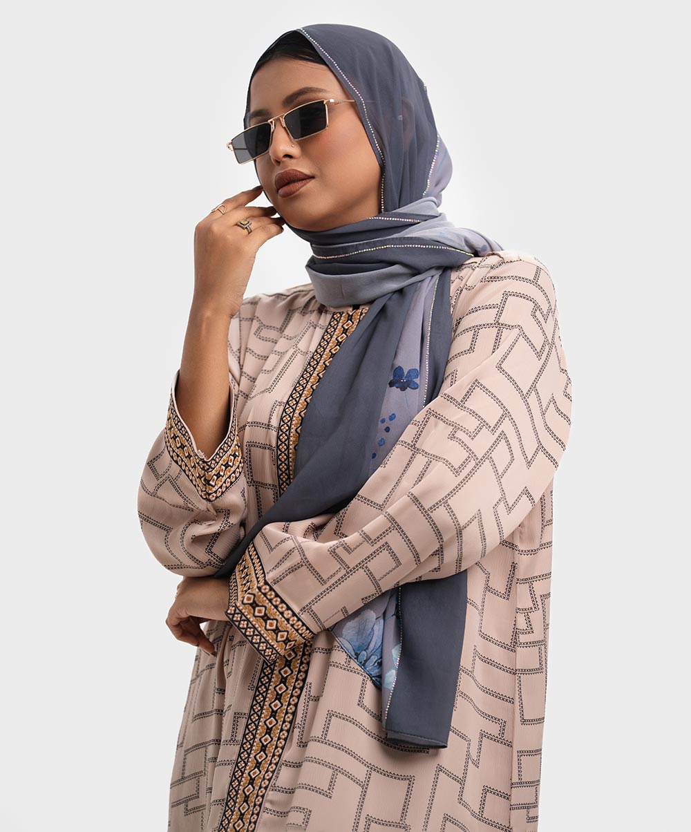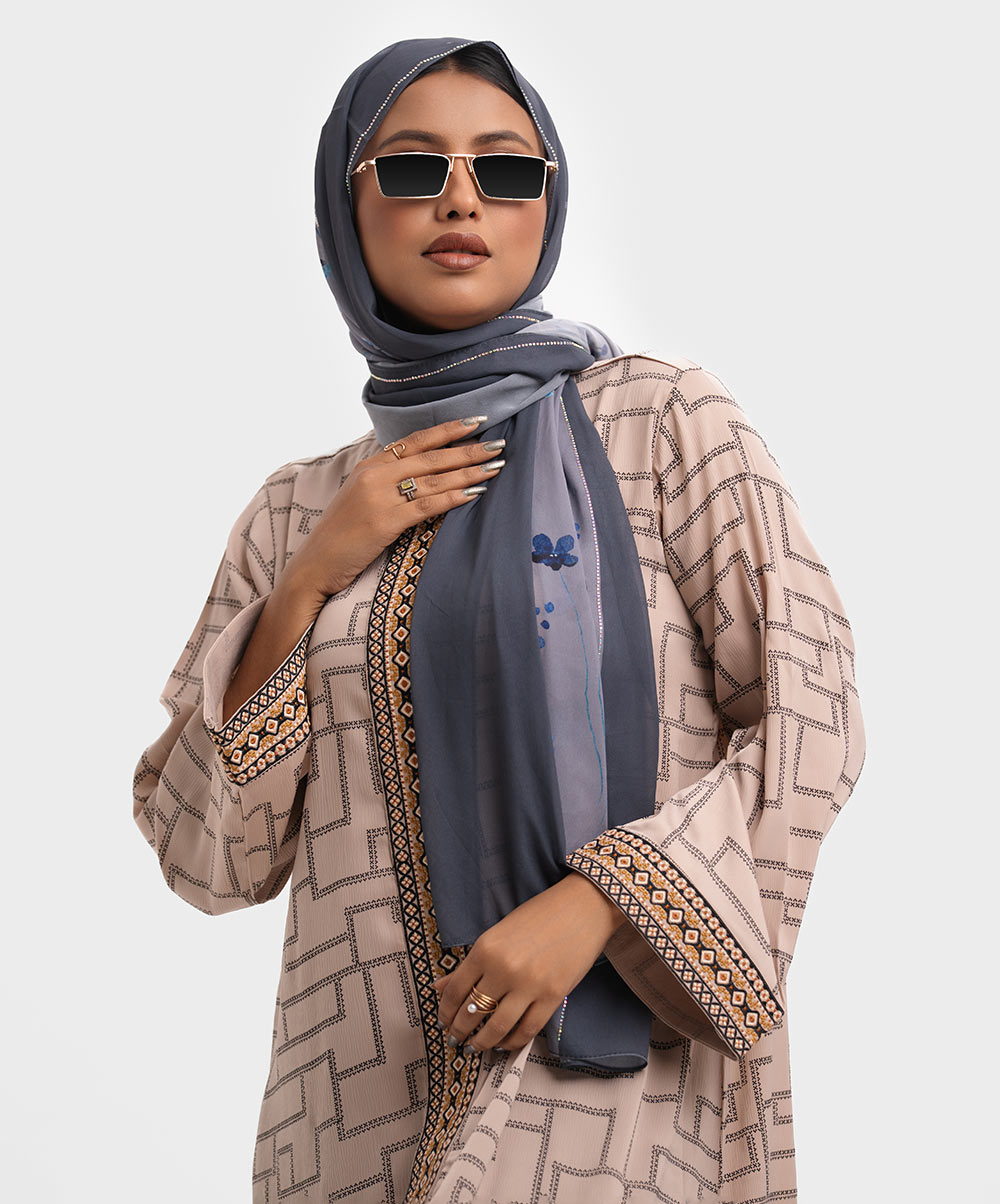 Gray party scarf in soft georgette fabric.