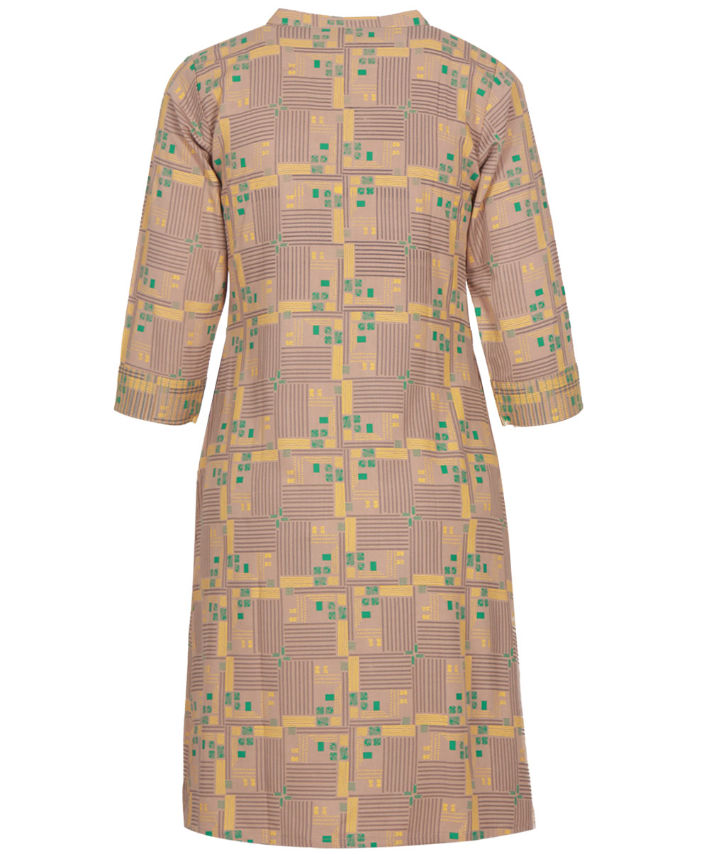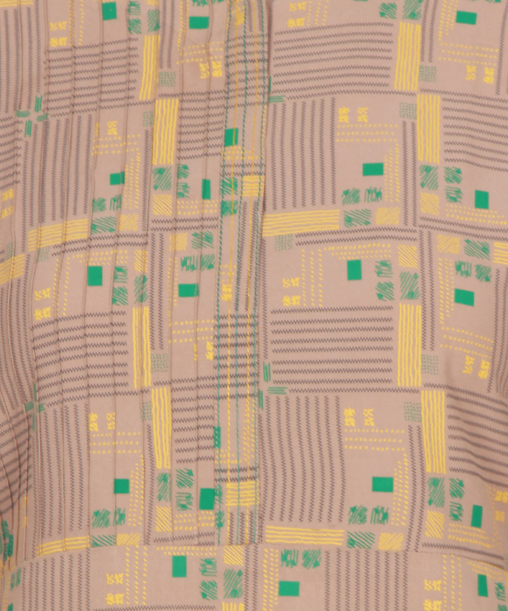 Grey viscose straight cut tunic with allover print. Designed with pleats at front and on sleeves opening.