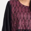 Women’s short tunic in crepe fabric. Bishop sleeves, round neck. Print and karchupi at the front.