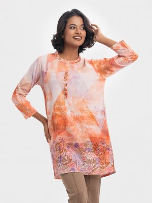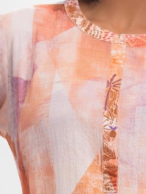 Tie-dye printed straight kameez in cotton fabric. Round neck with tassel tie and three-quarter sleeved.