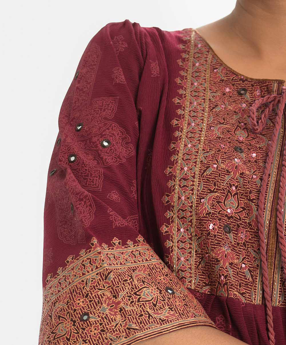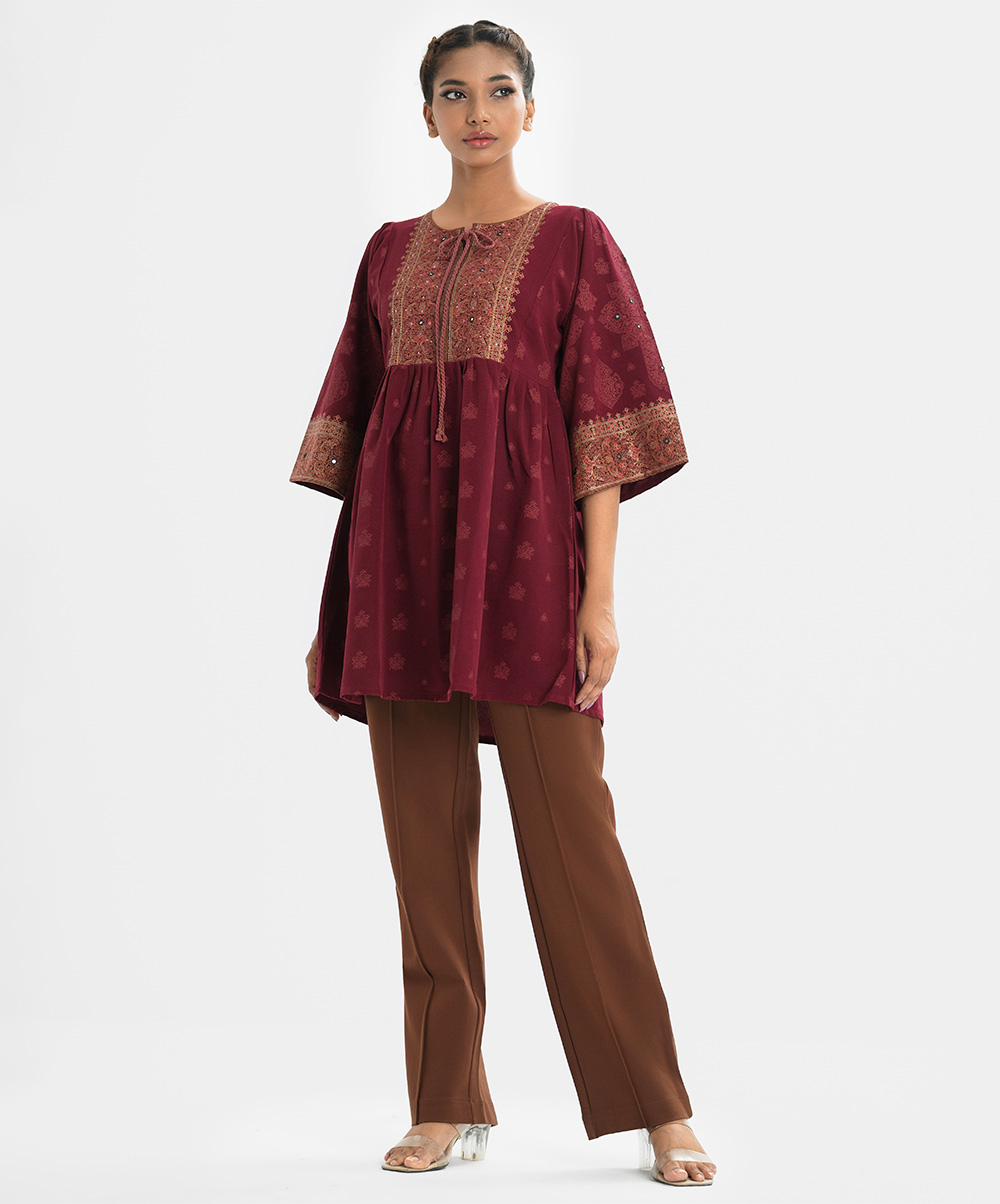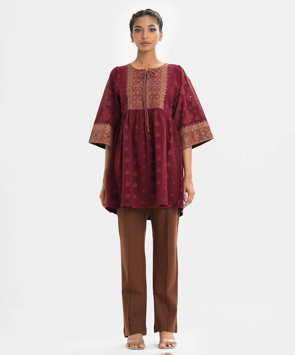Maroon Crepe A-line Tunic