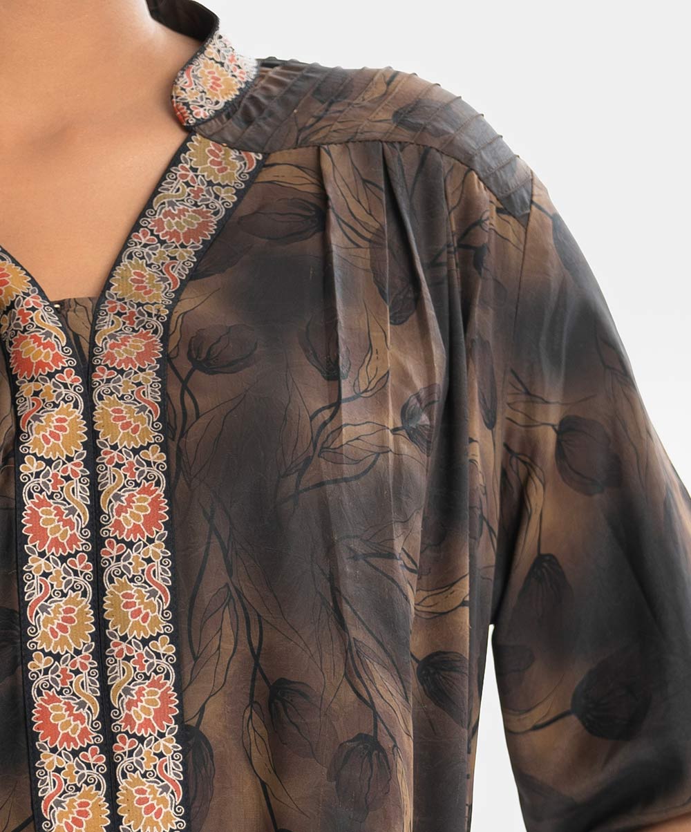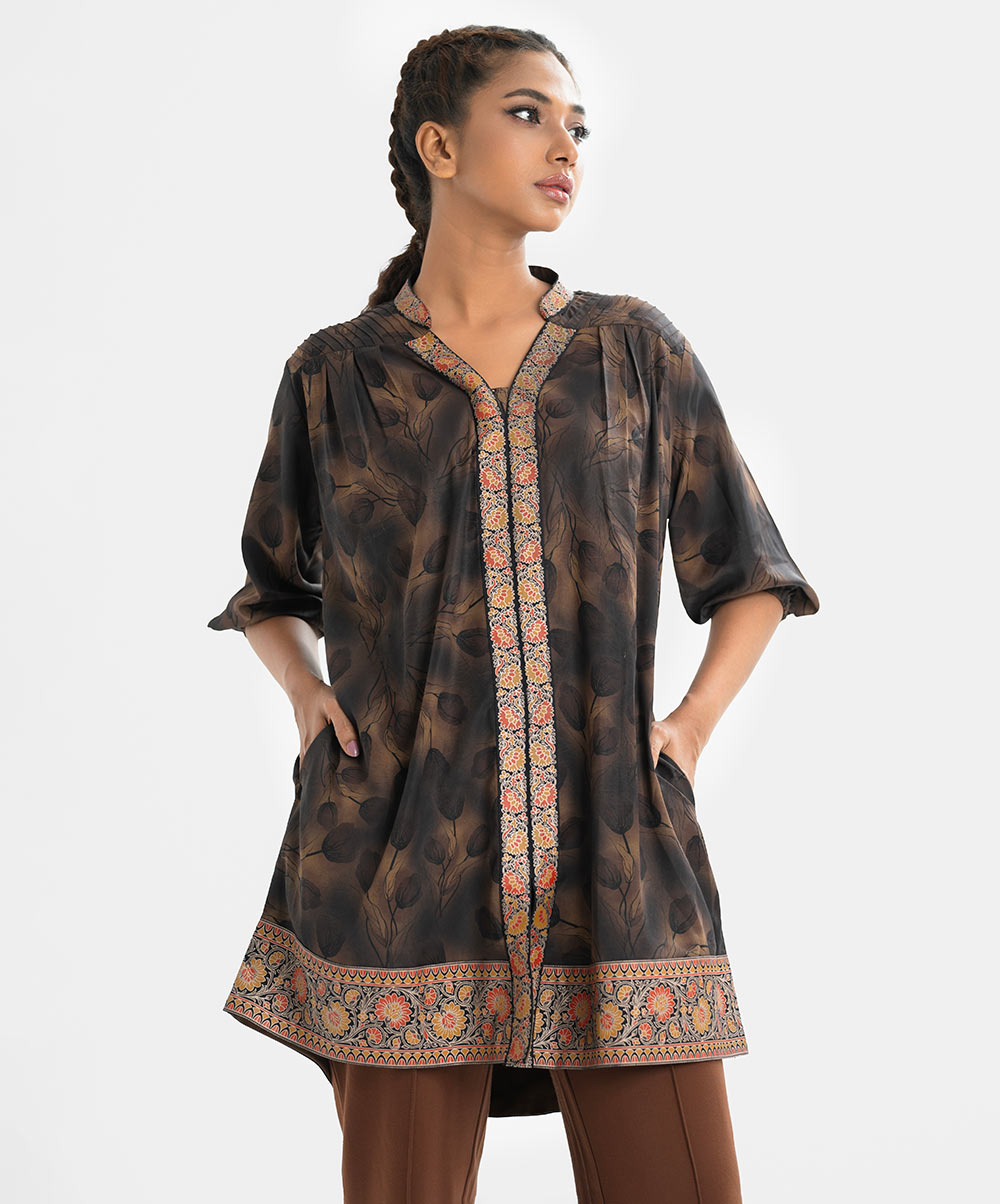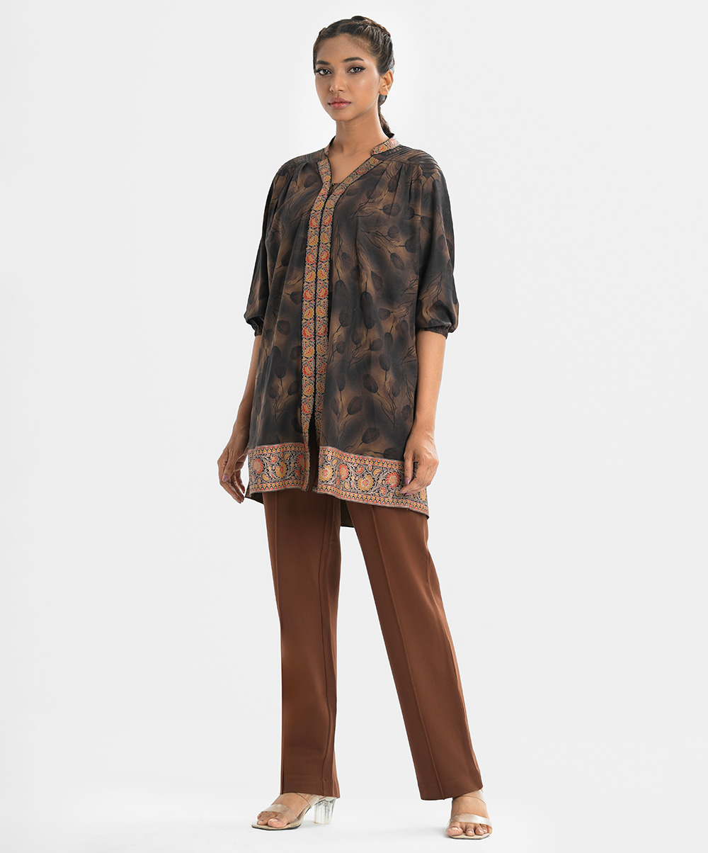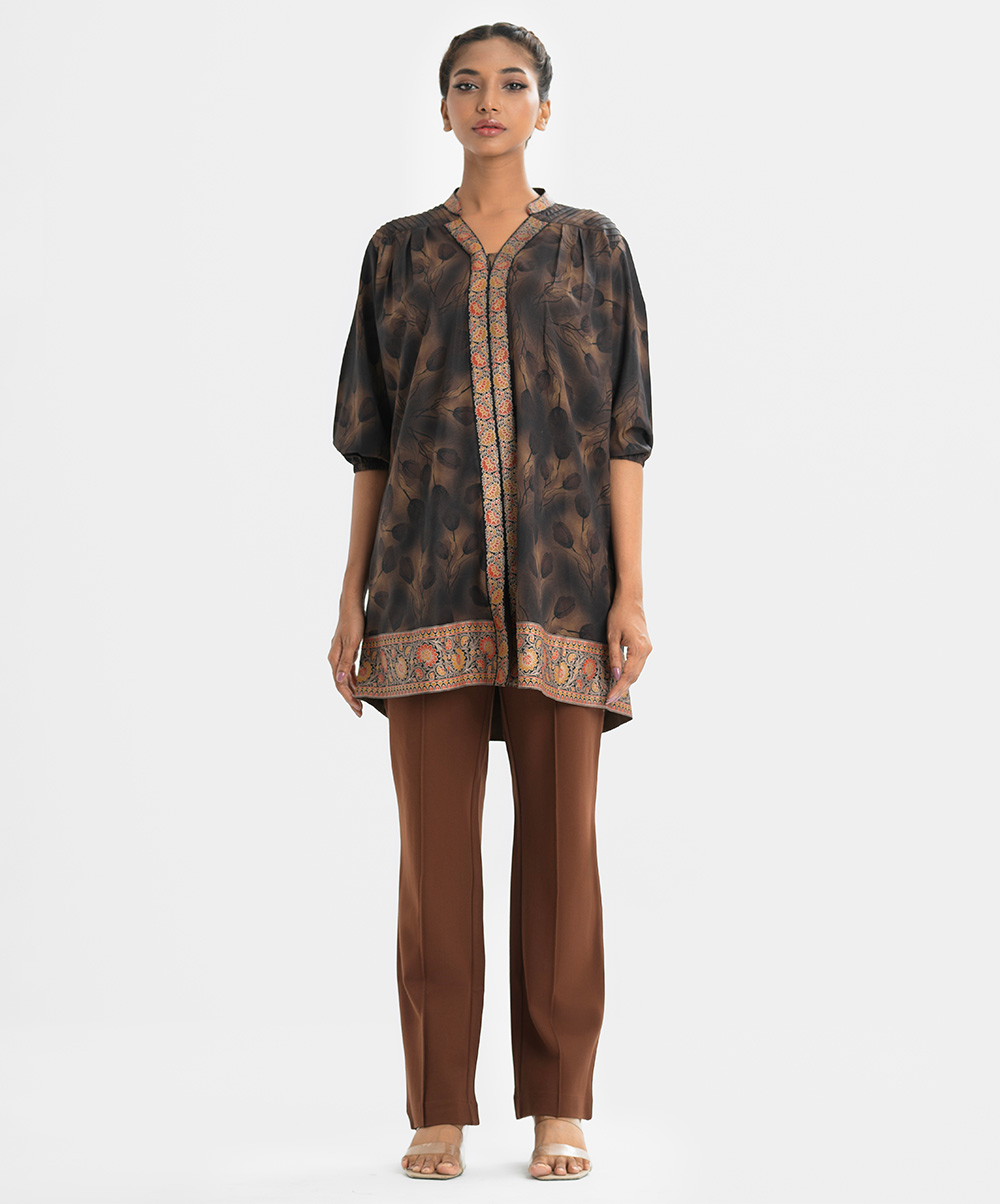 Brown Georgette Straight Tunic