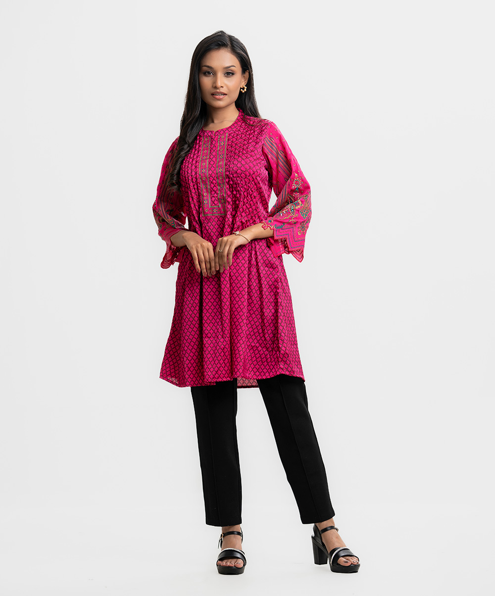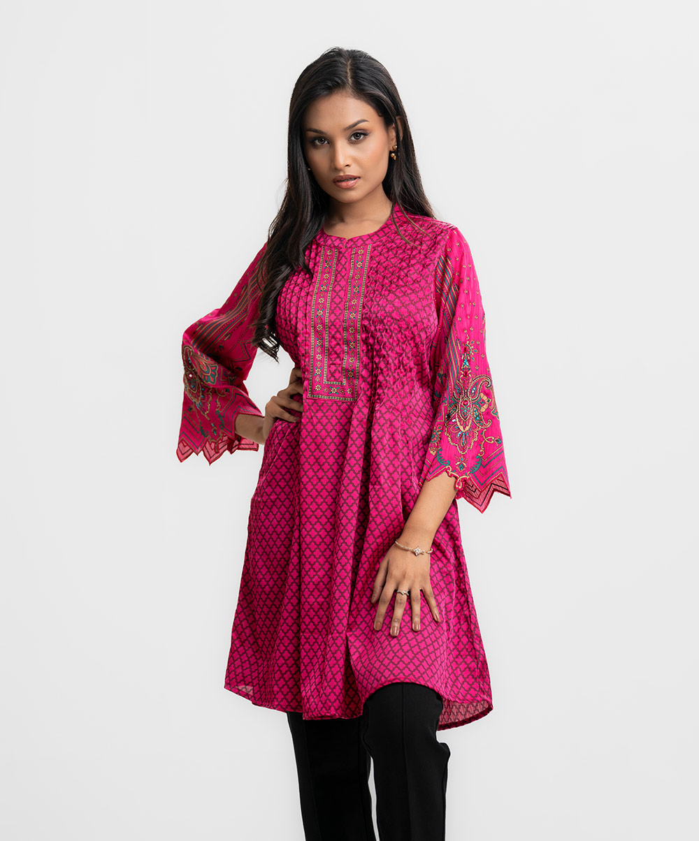 Pink Satin Georgette A-line Tunic