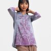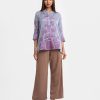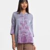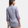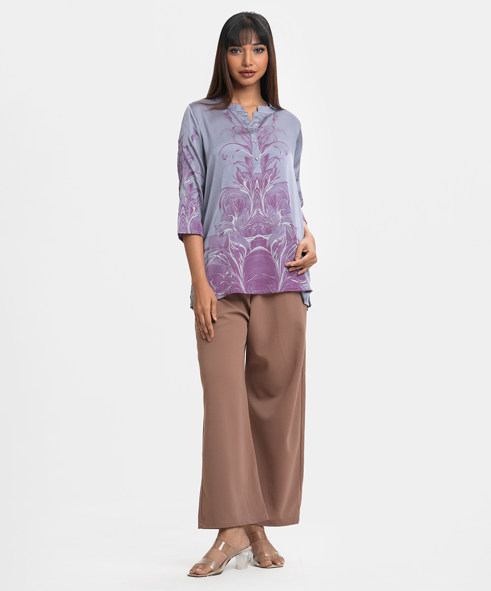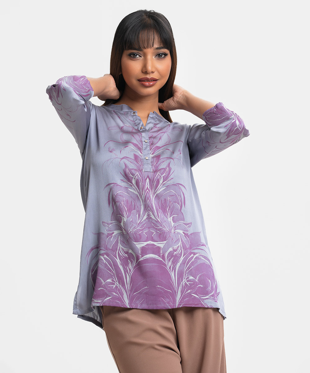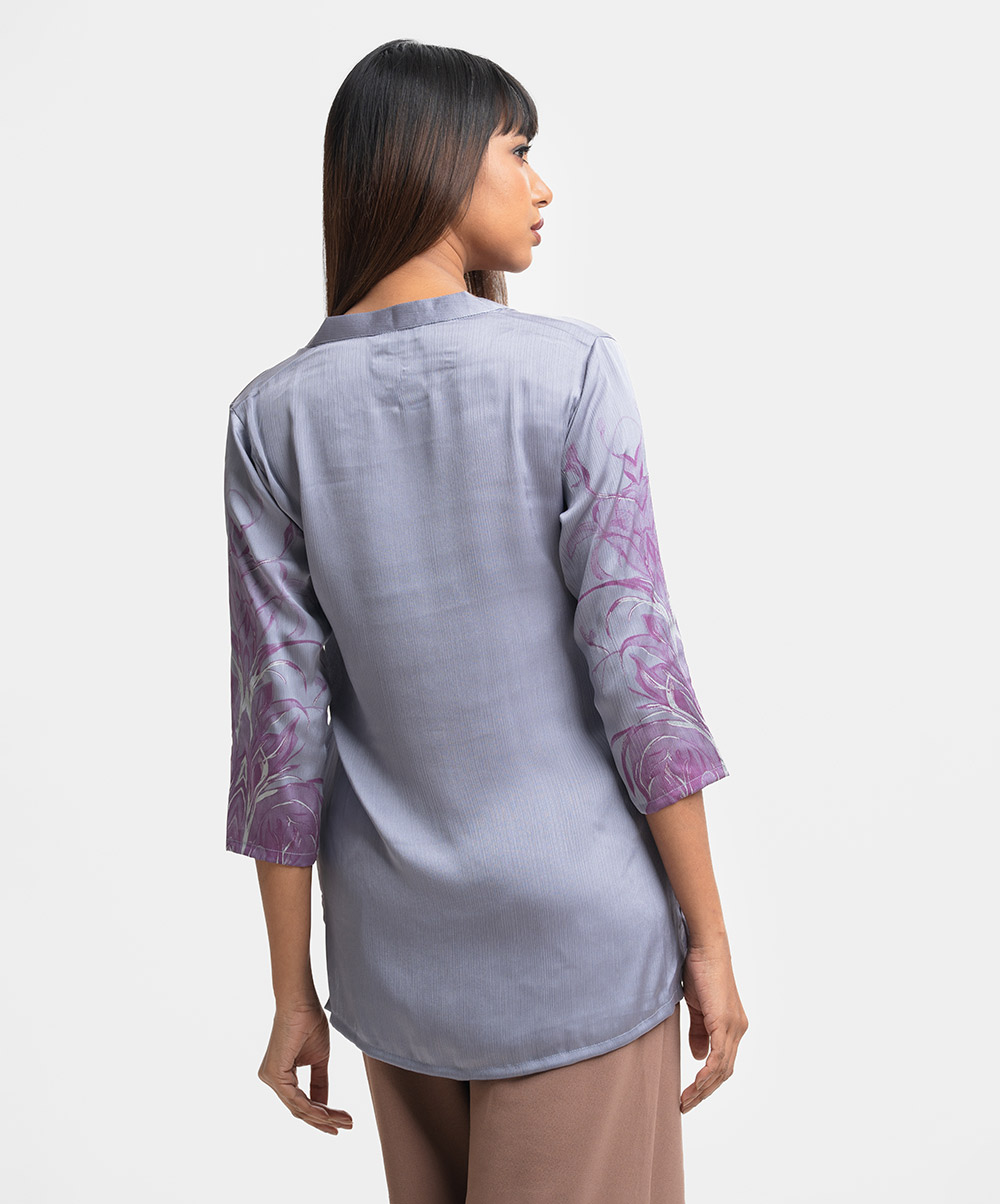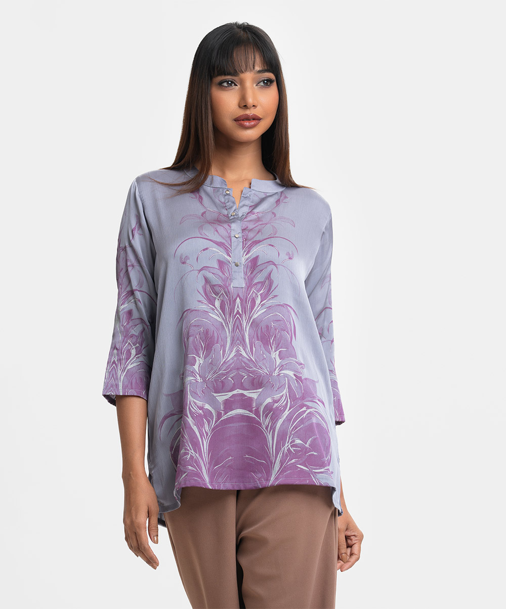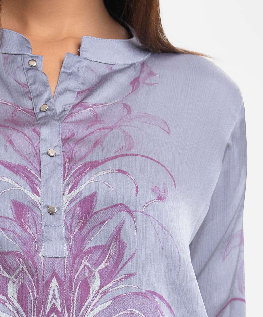 Band collar tunic in soft georgette fabric. Three-quarter sleeves.