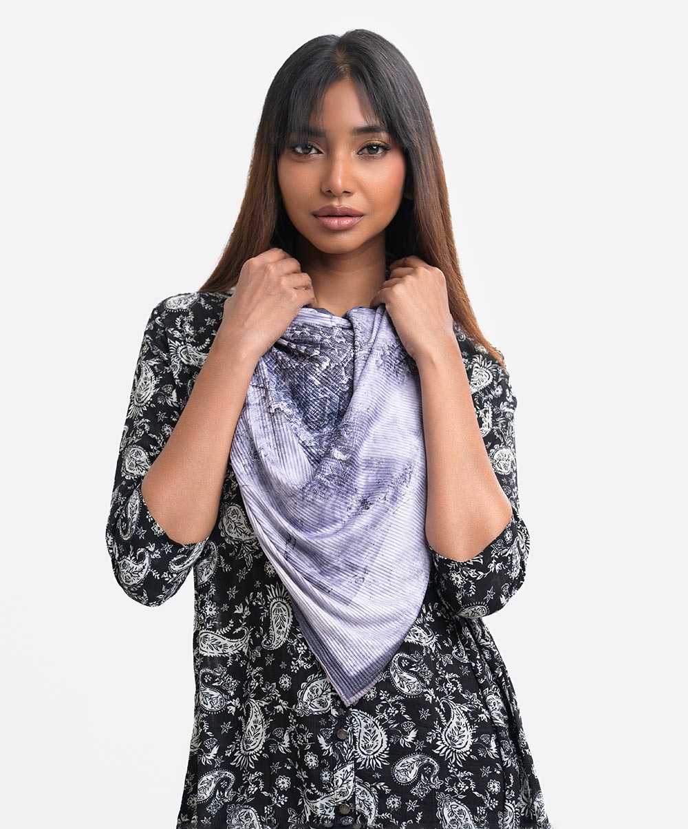 Women’s printed scarf in stretchable georgette fabric.