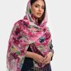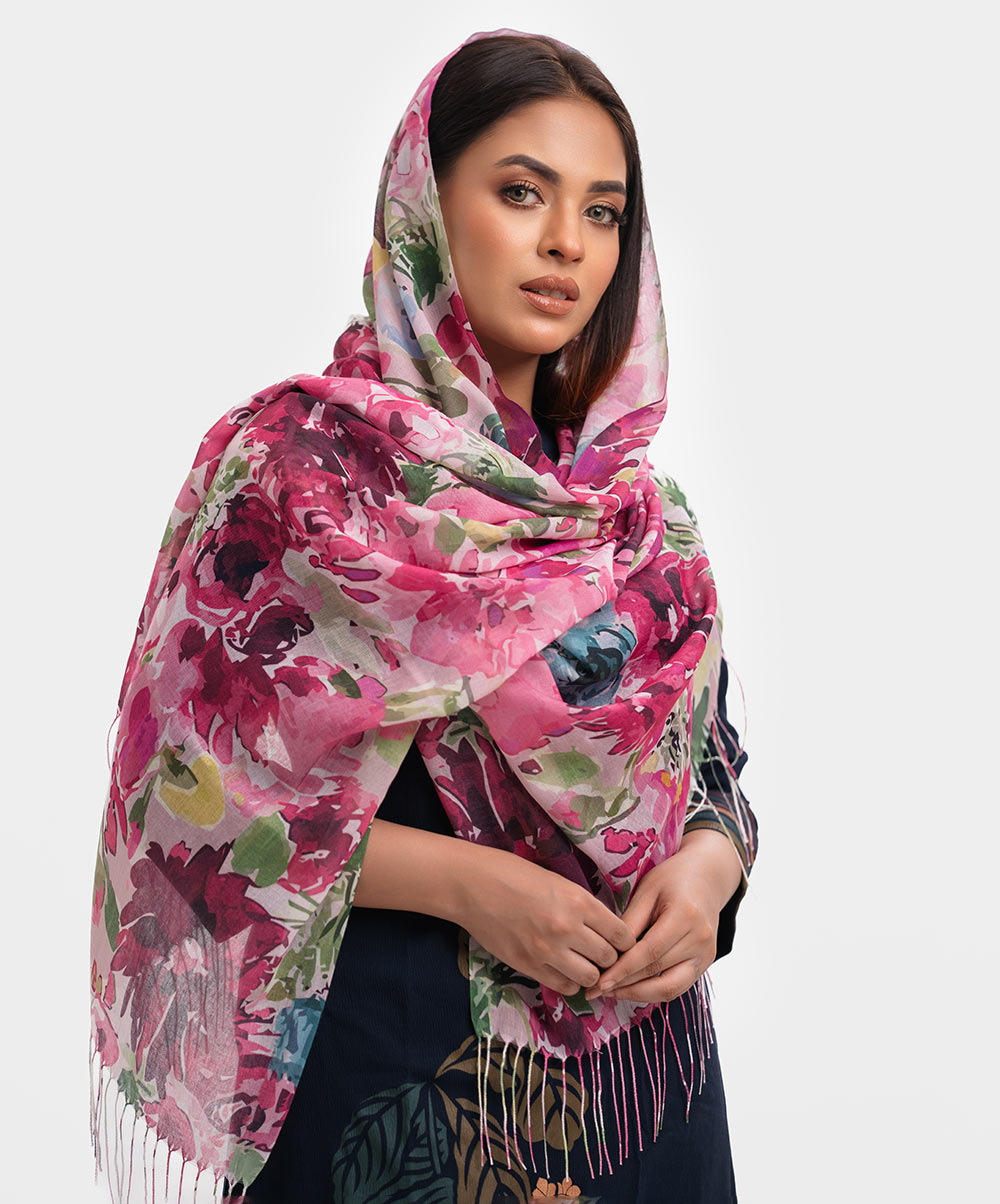 Women’s printed scarf in blended cotton fabric. Fringe trim at the border.