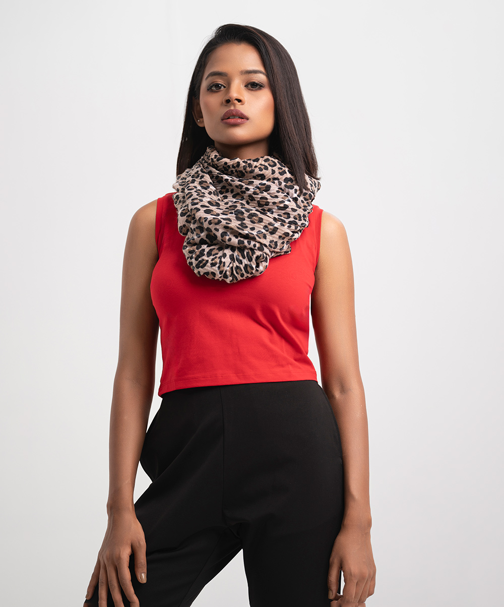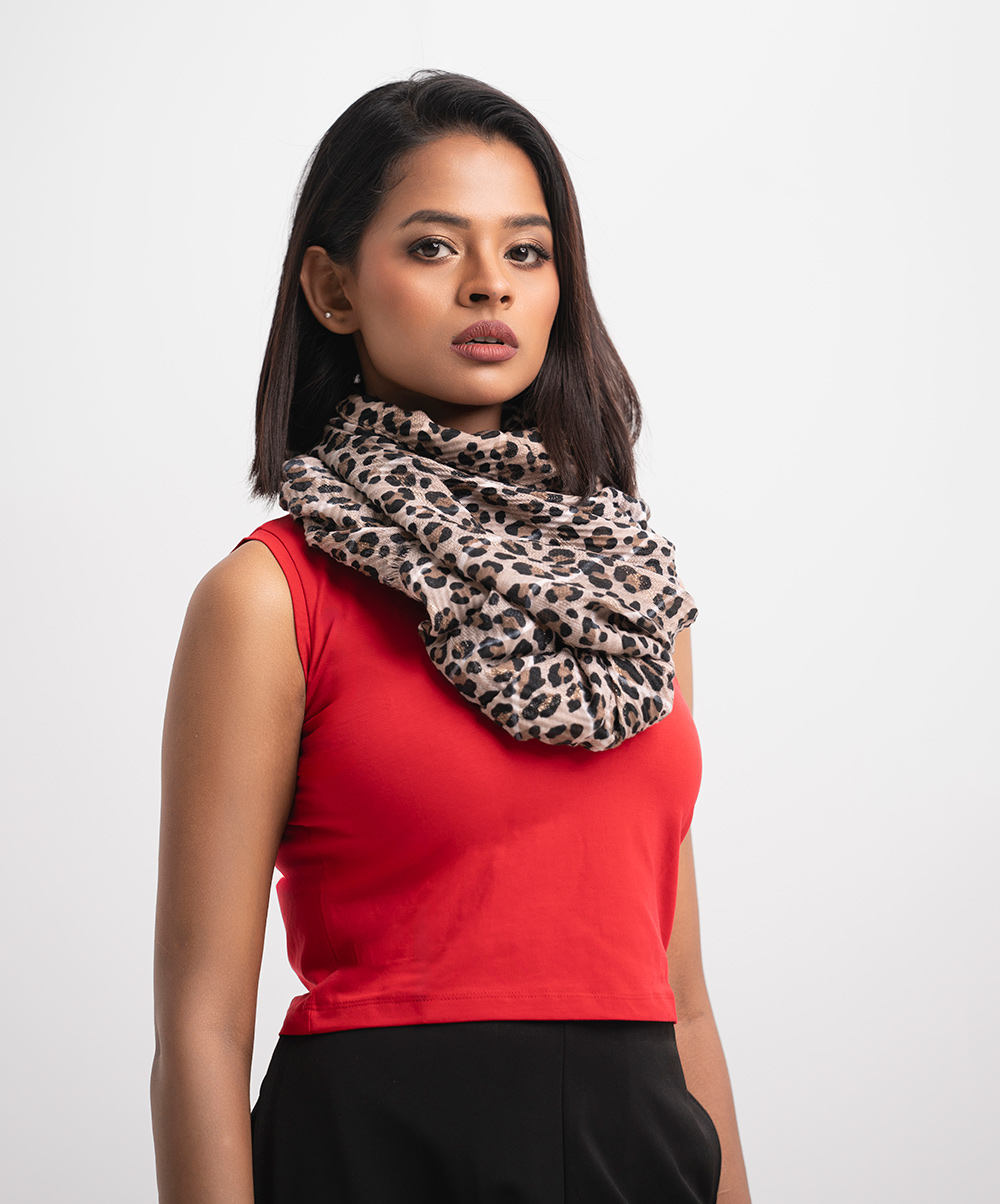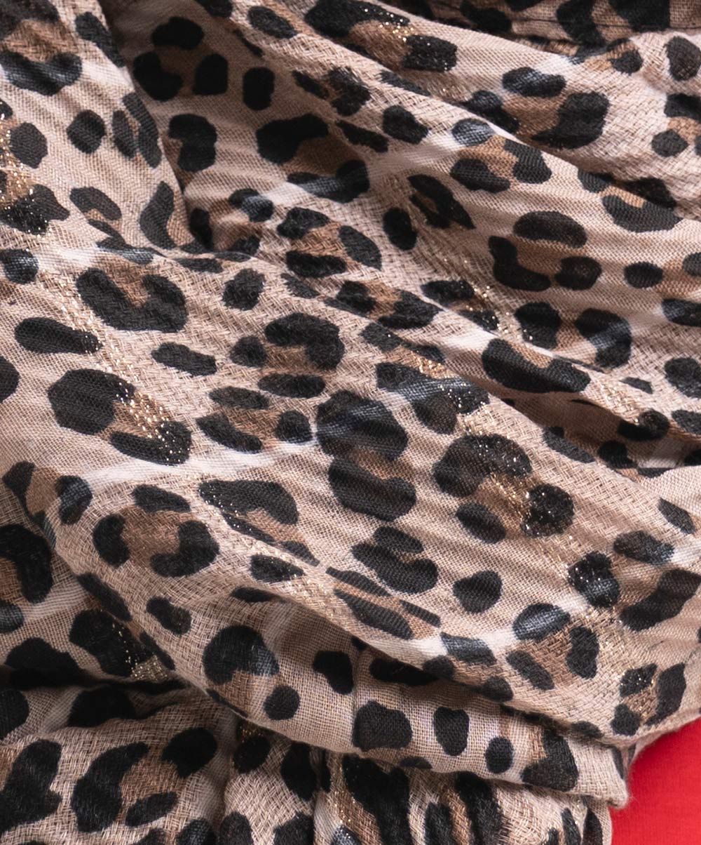 Women’s printed scarf in blended cotton fabric. All-over zari threading detail.