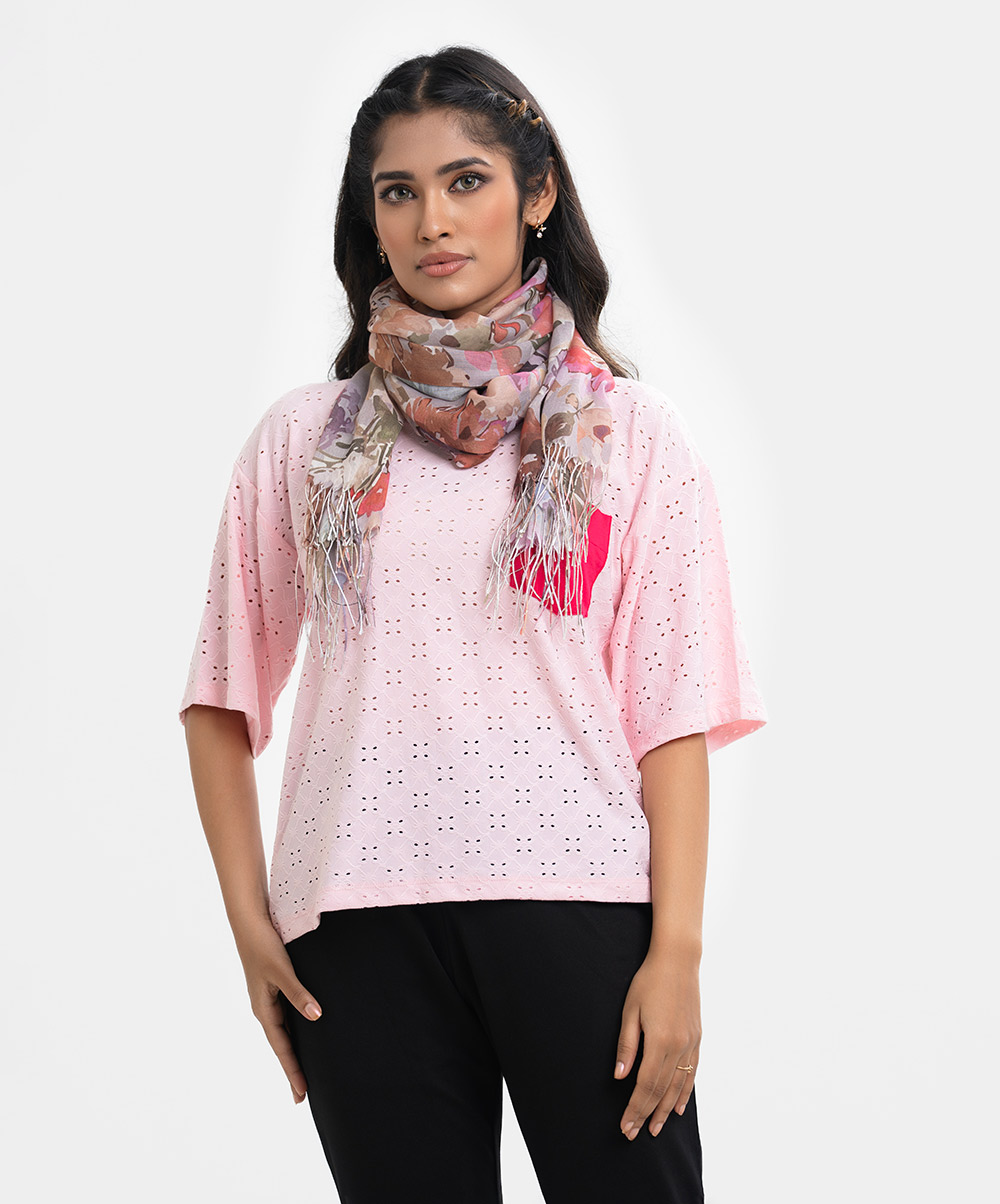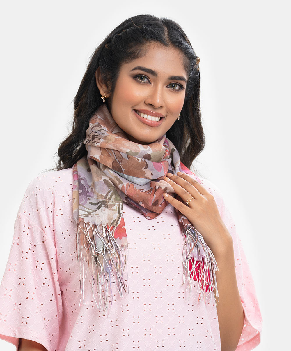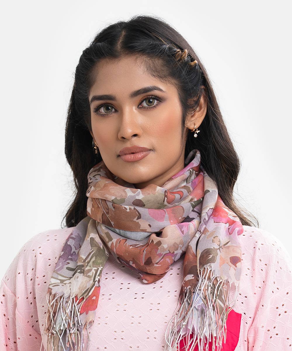 Women’s printed scarf in blended cotton fabric. Fringe trim at the border.