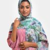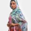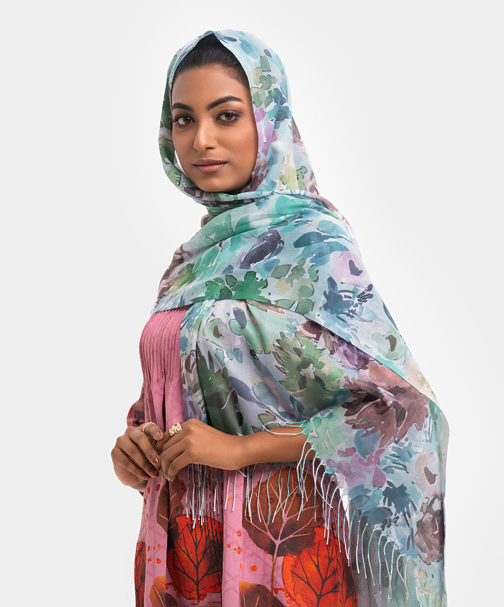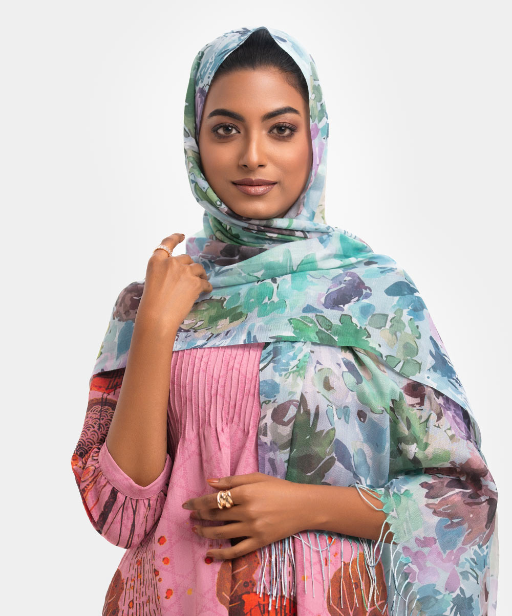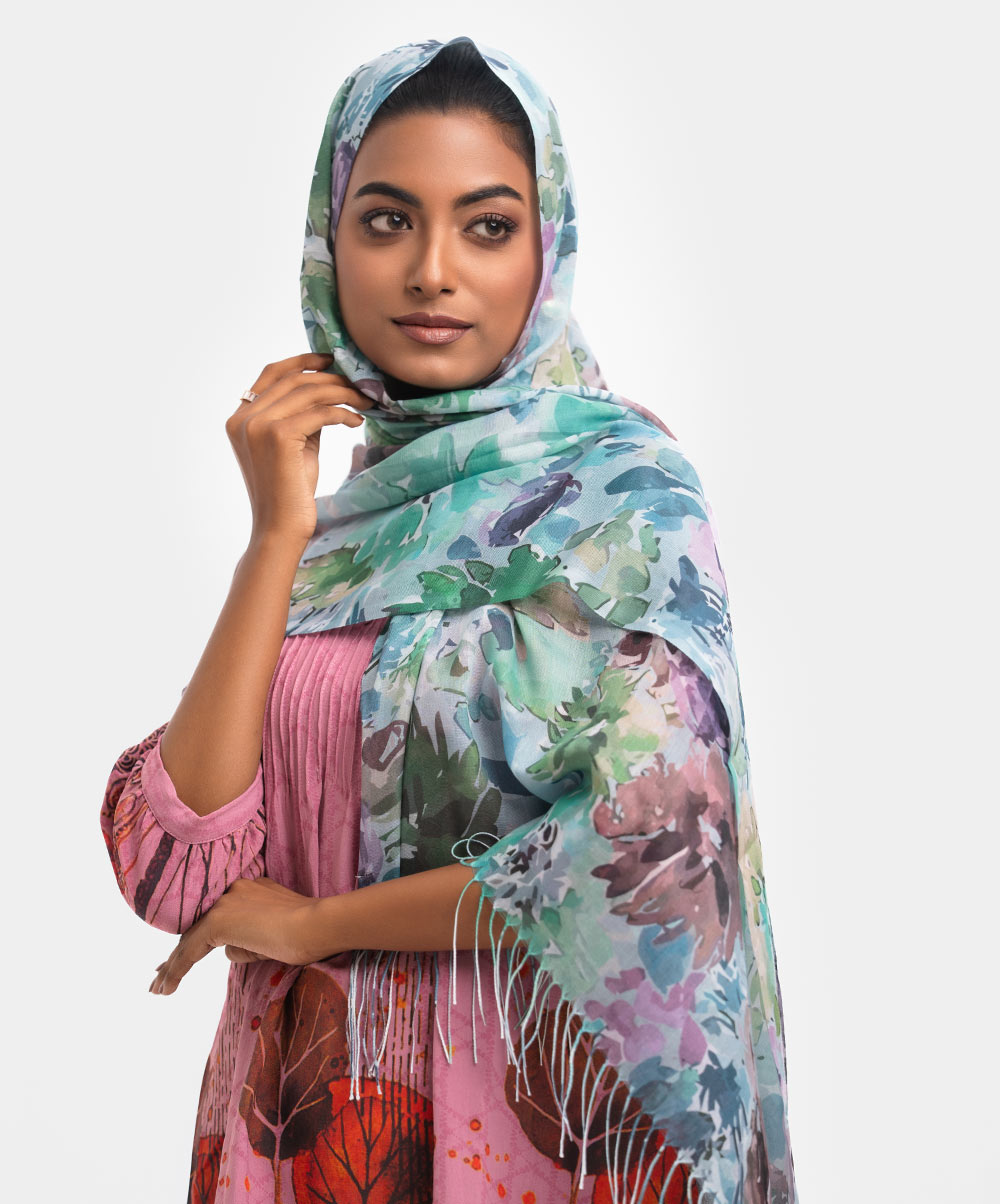 Women’s printed scarf in blended cotton fabric. Fringe trim at the border.