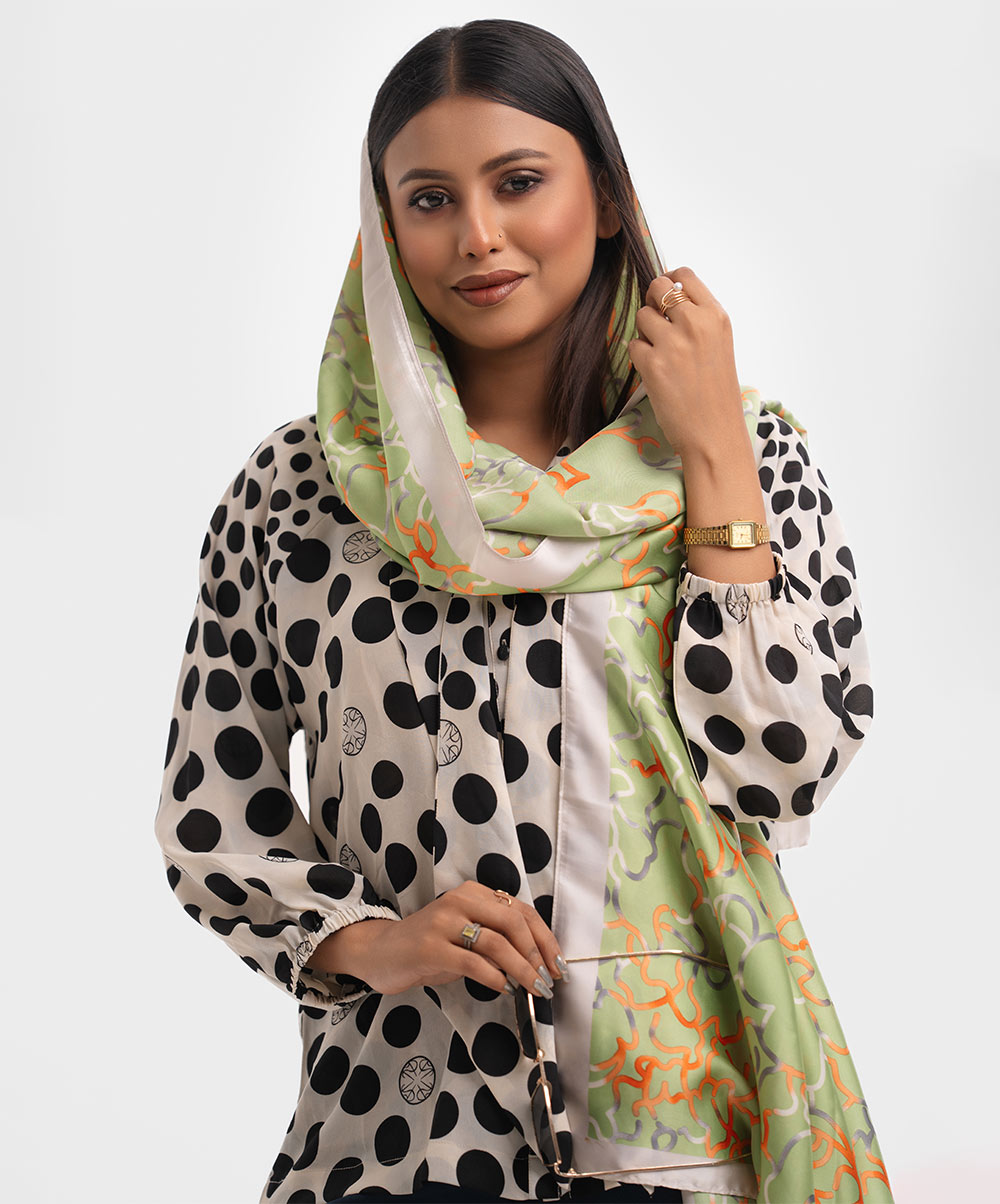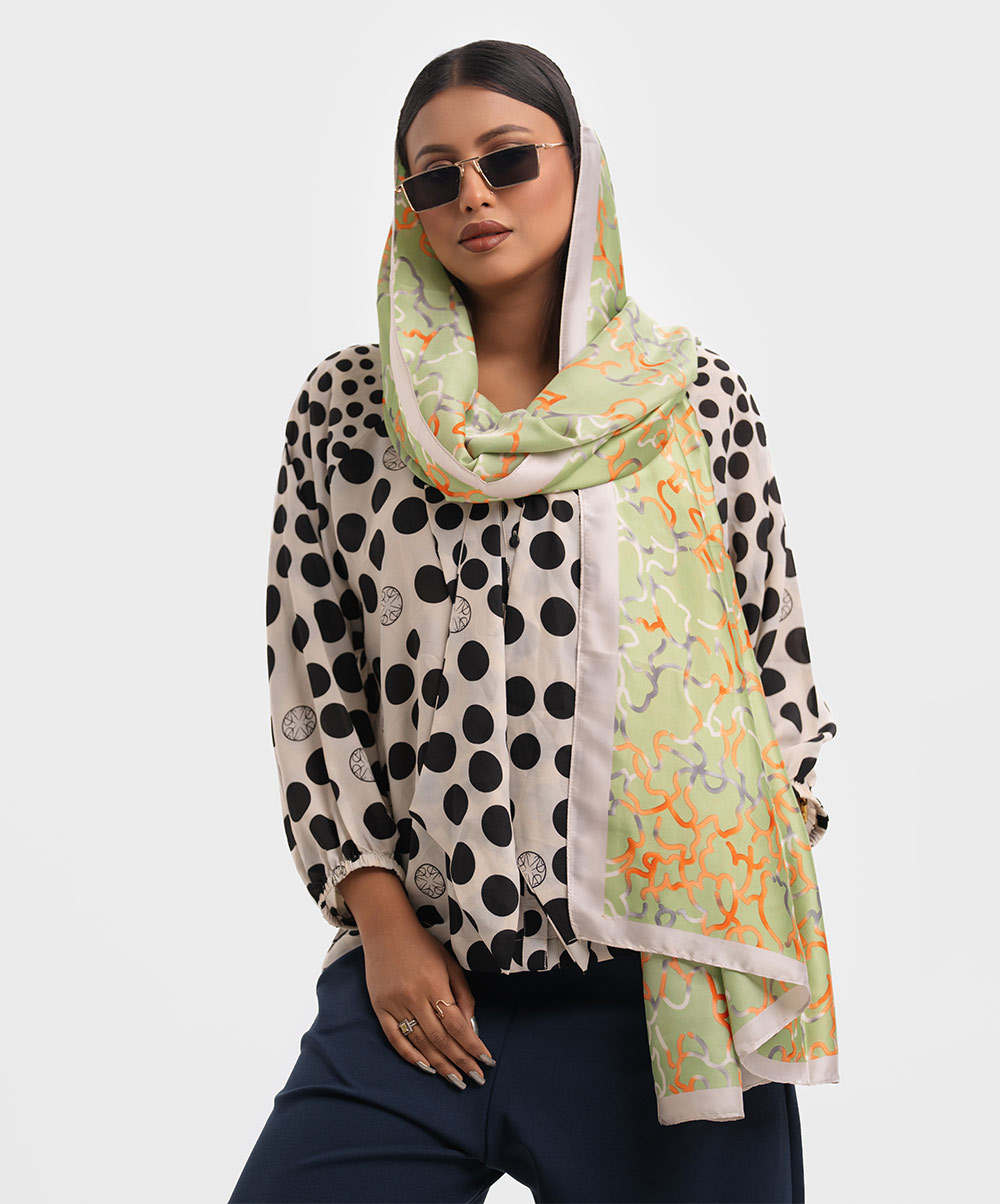 Women’s printed scarf in silk fabric.