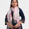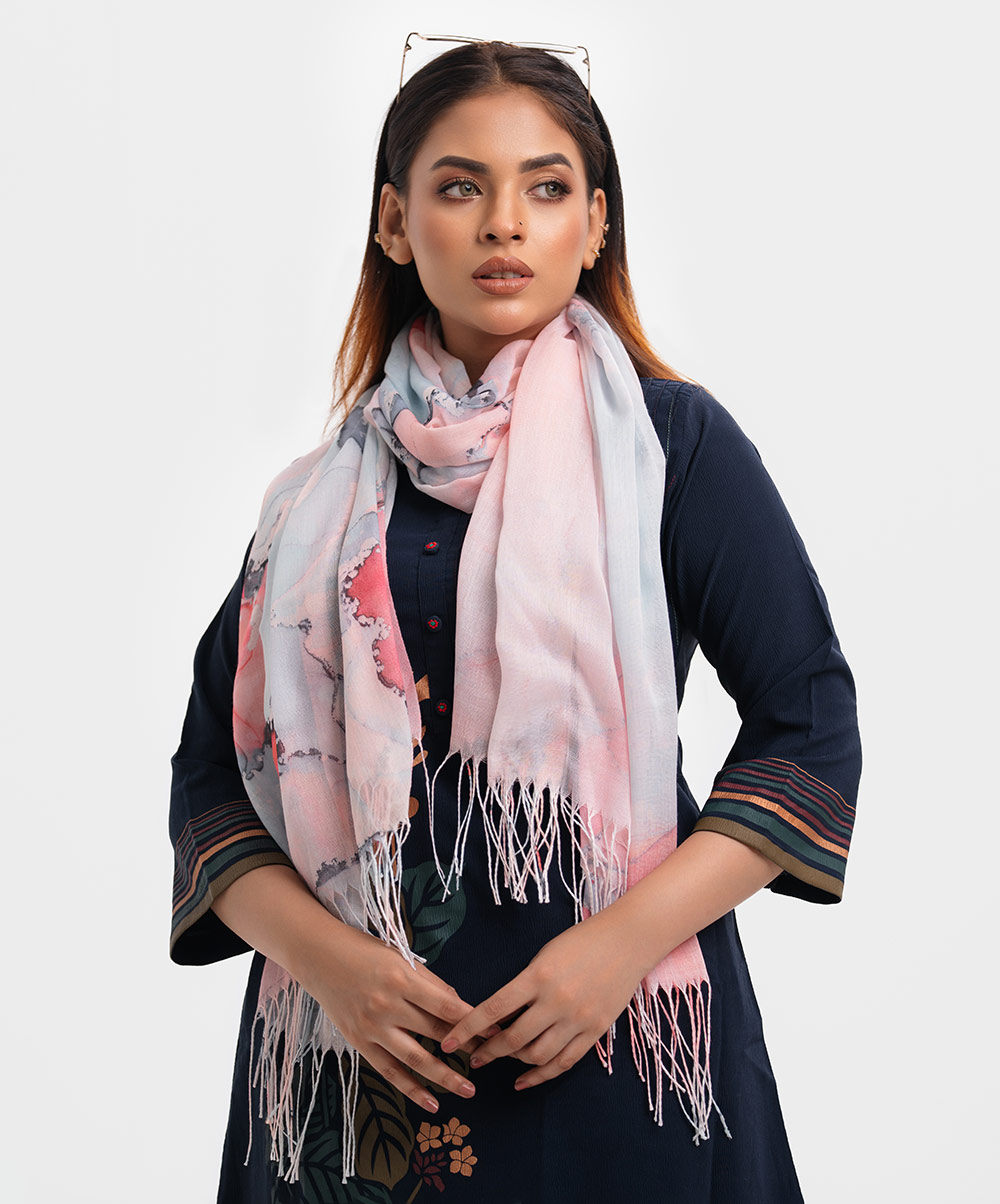Women’s printed scarf in blended cotton fabric. Fringe trim at the border.