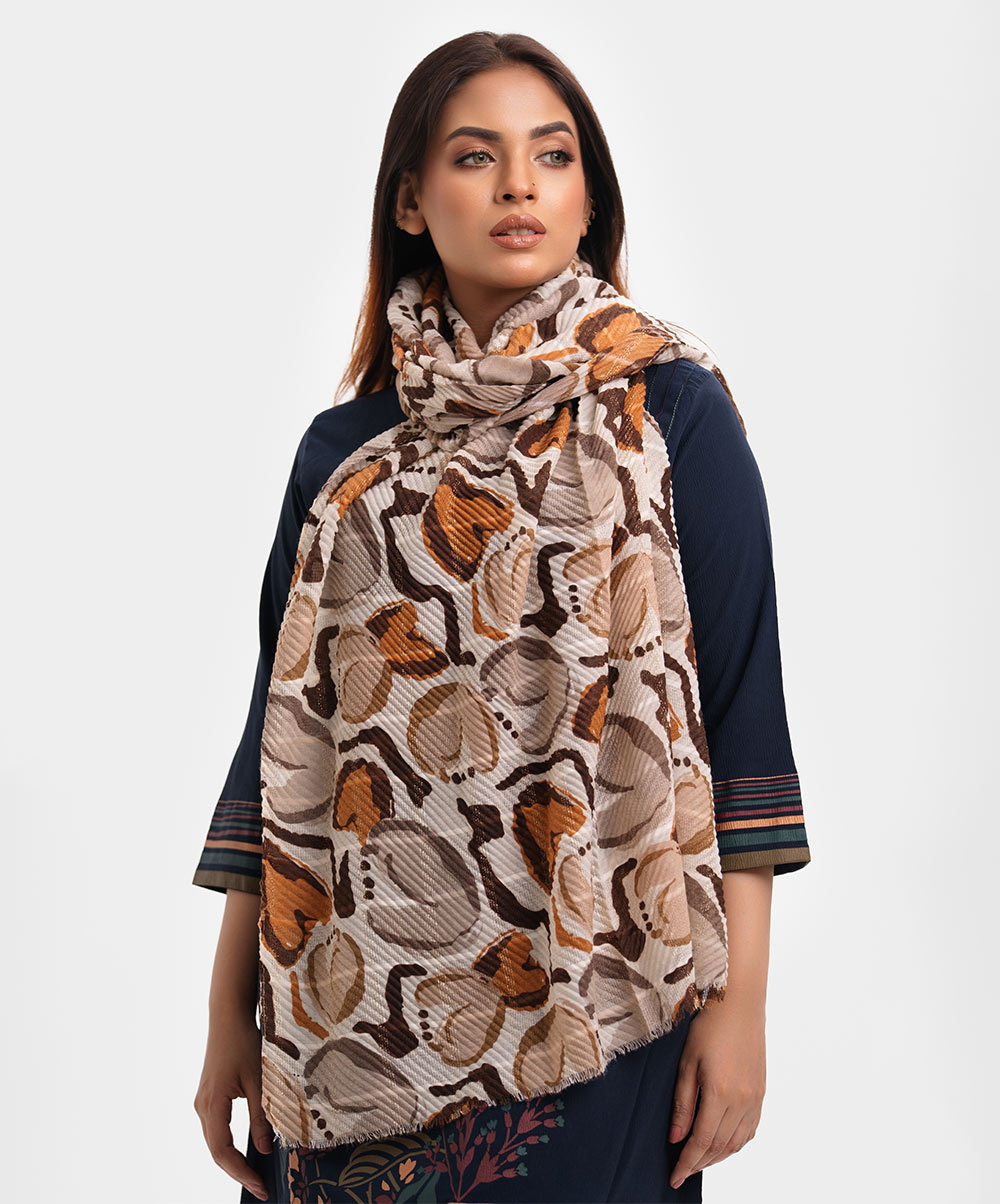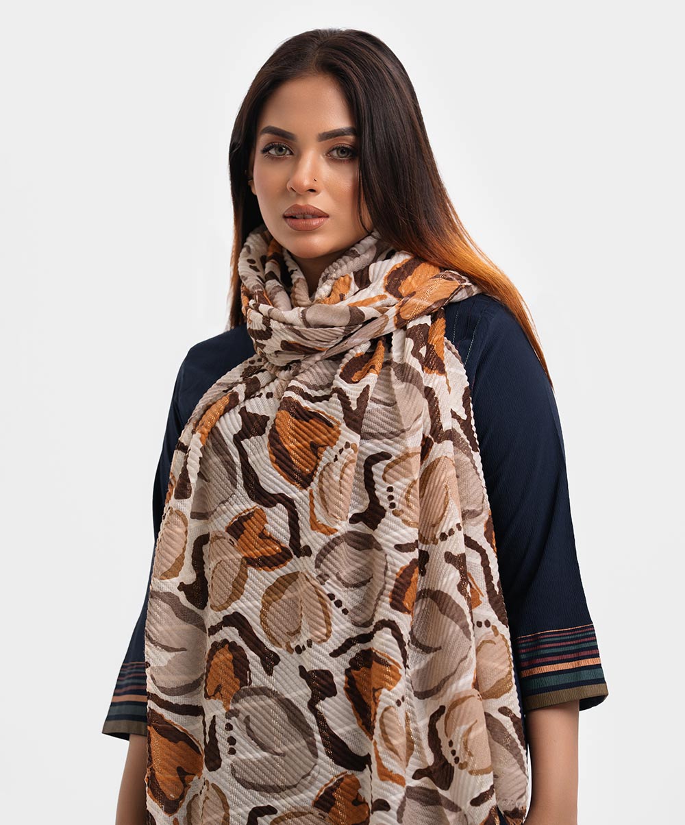 Women’s printed scarf in cotton blended fabric.