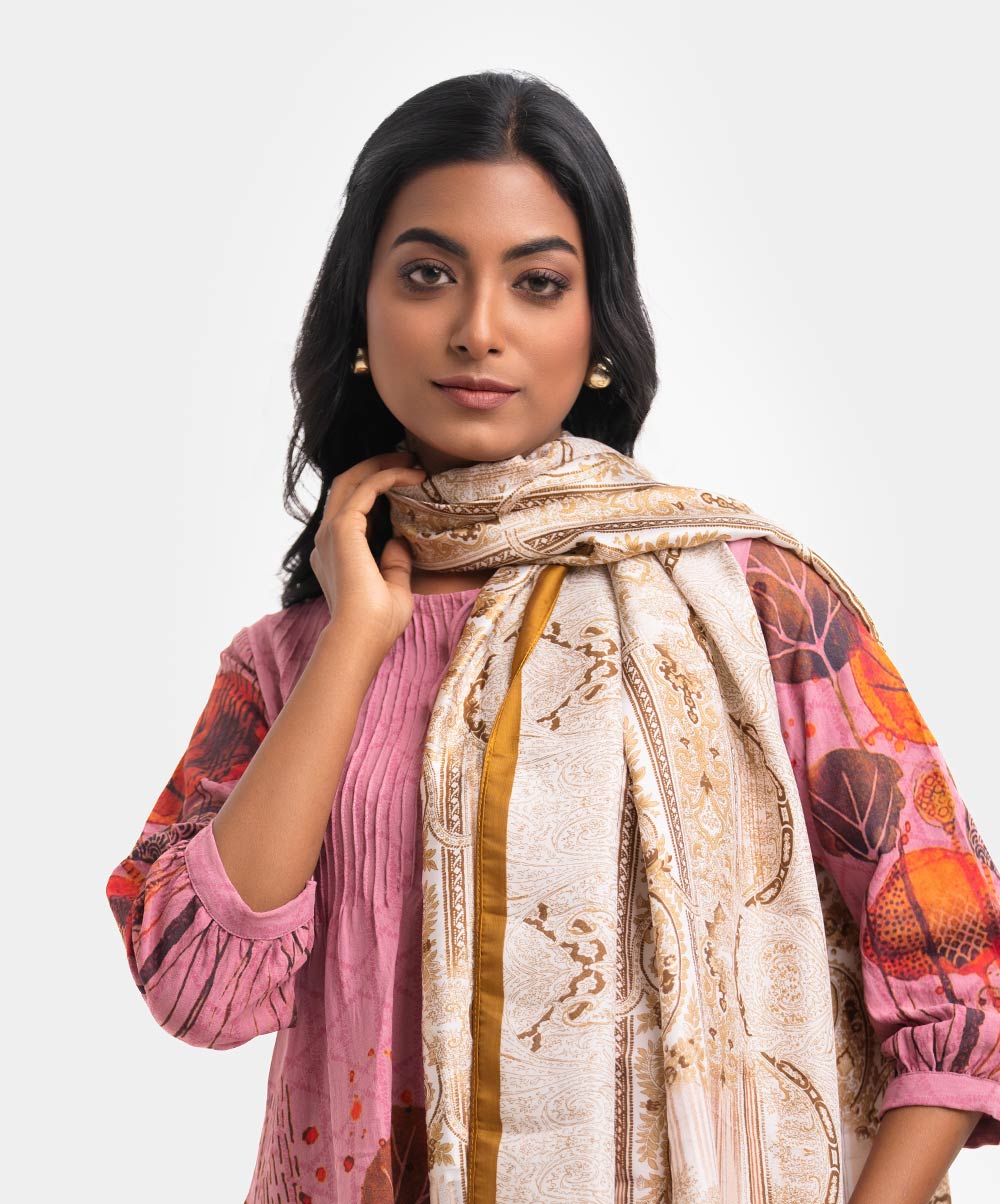 Women’s printed scarf in silk fabric.