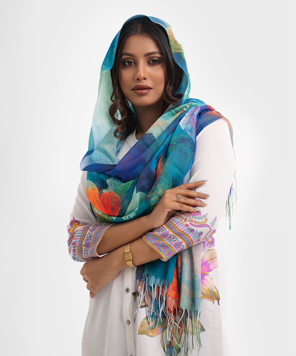 Multi-color hijab/scarf in soft blended fabric. Printed.