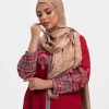 Brown hijab/scarf in blended jacquard fabric. Trimmed fringes on the borders.