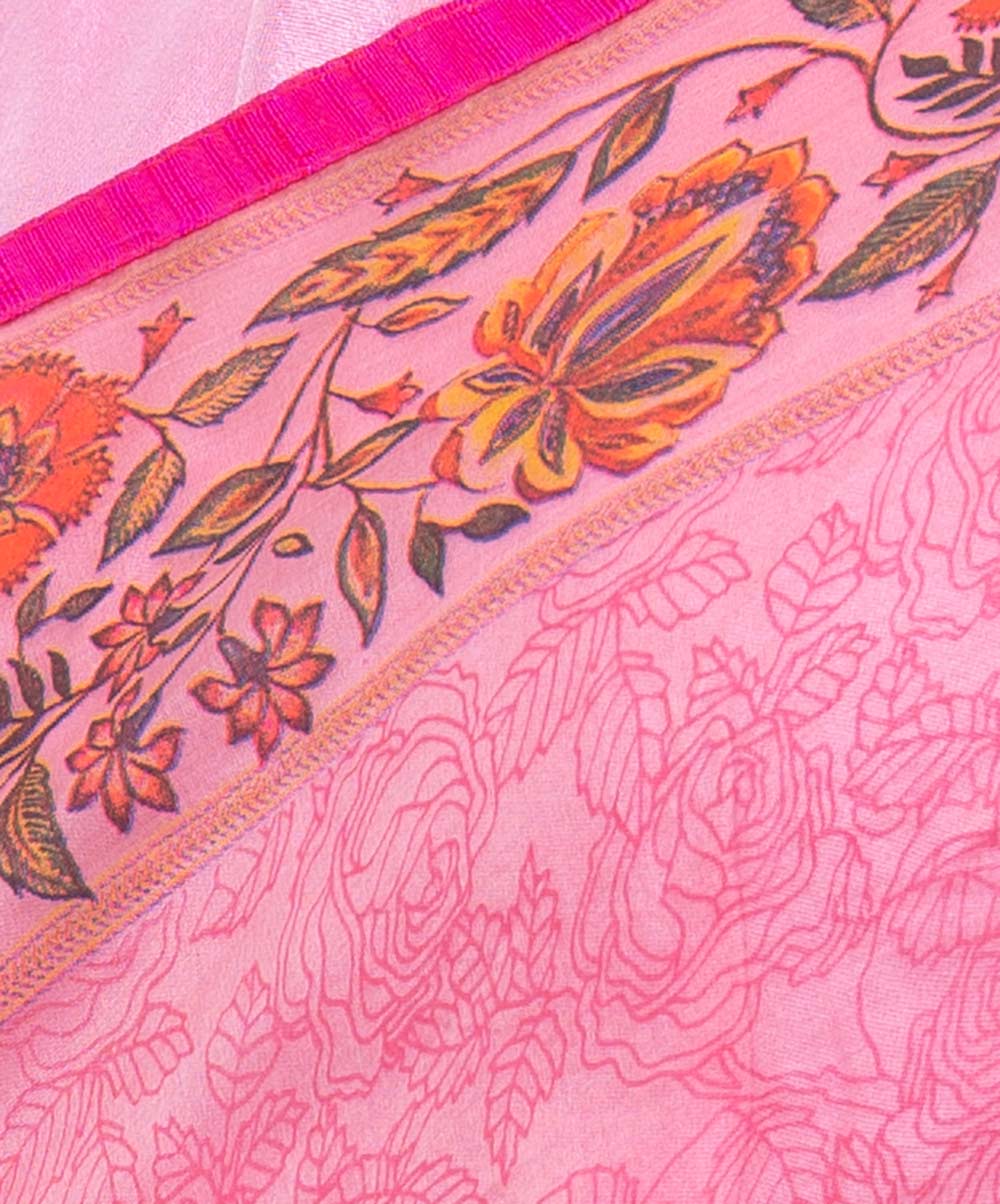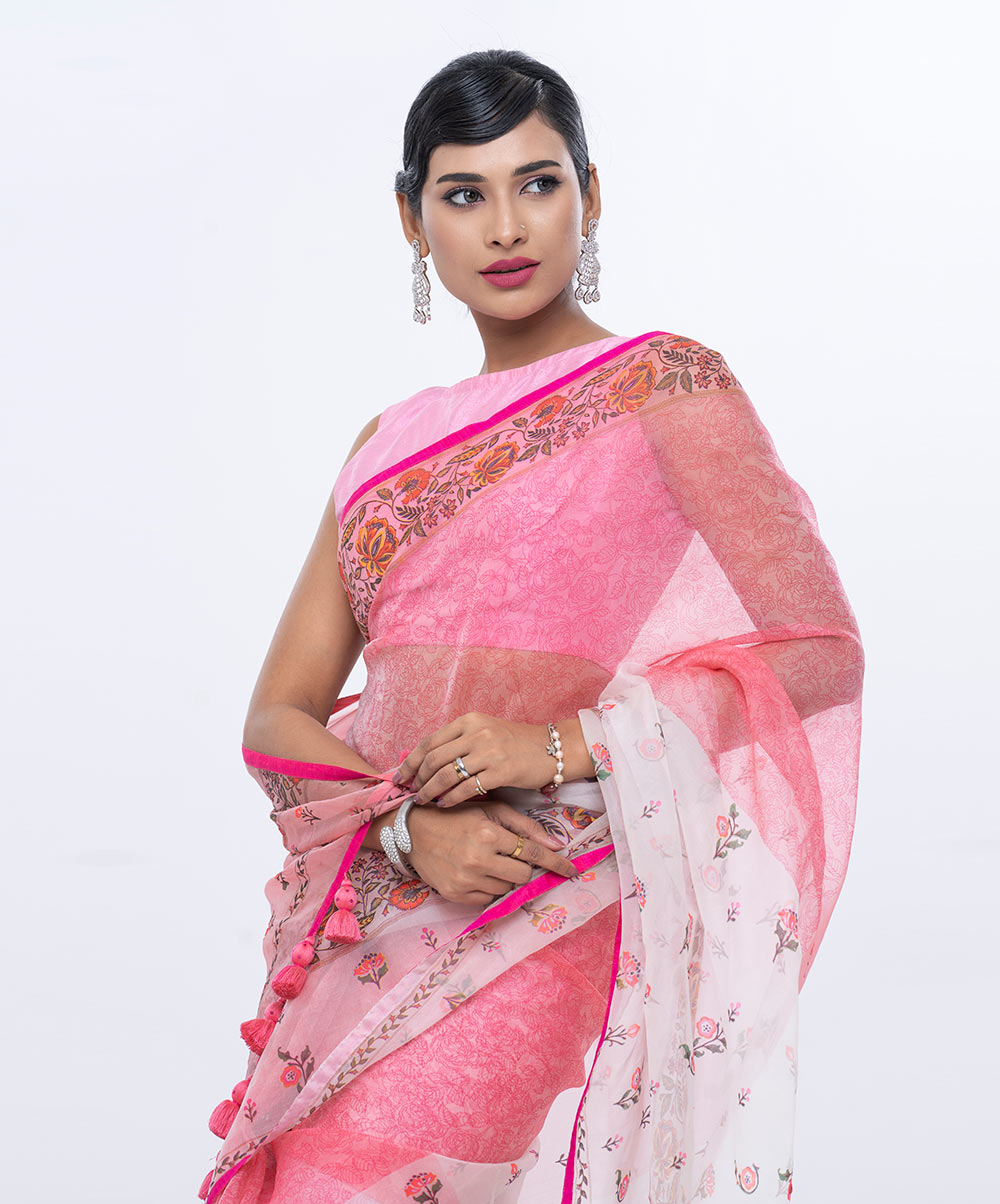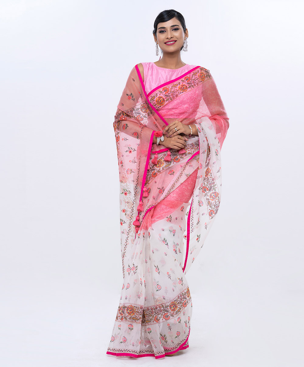 White and Pink Exclusive Muslin Silk Saree