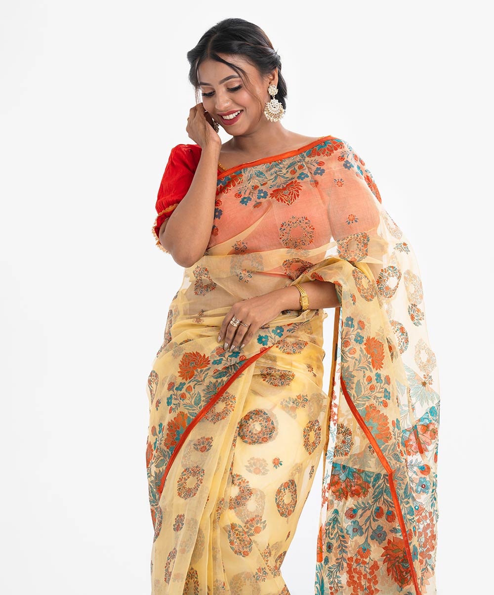 Yellow Muslin Exclusive Saree