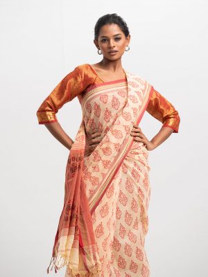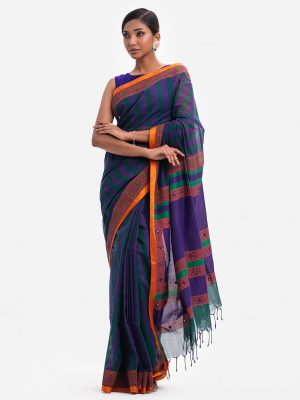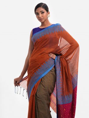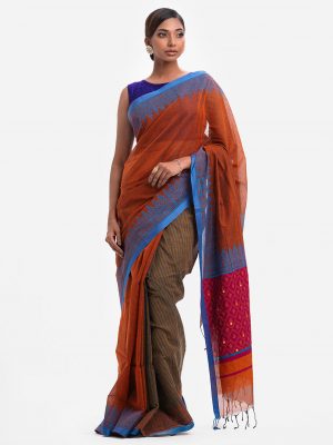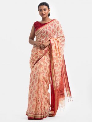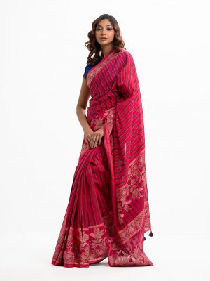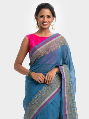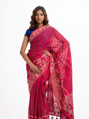 Women’s printed exclusive saree in muslin fabric. Karchupi at achal with beautiful tassels.