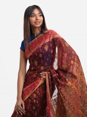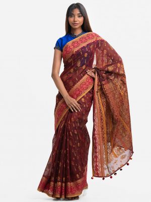 Brown Half-Silk Saree