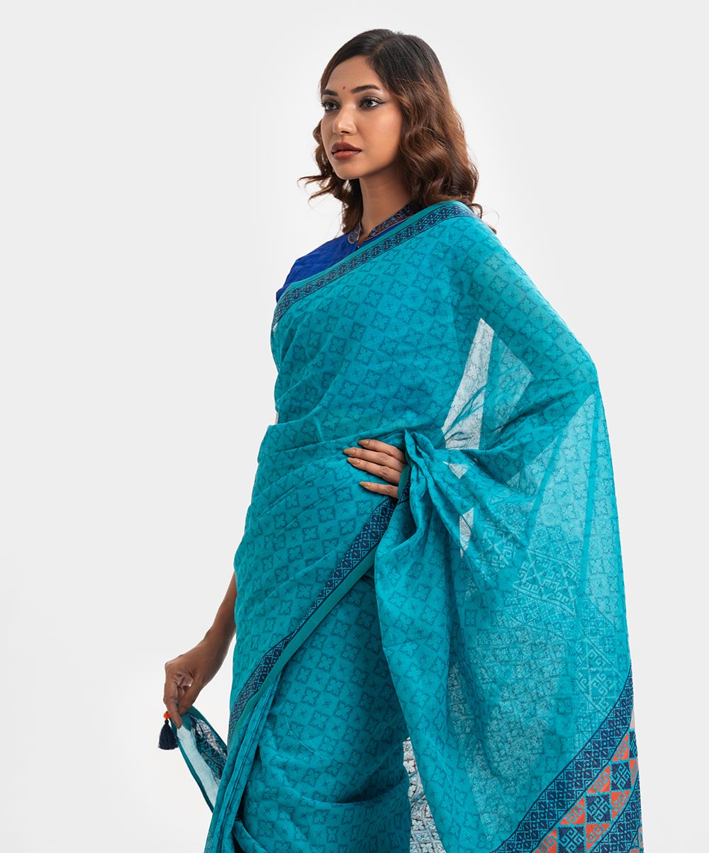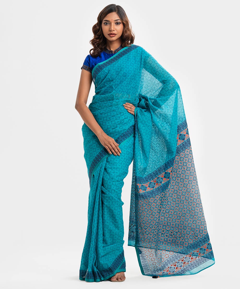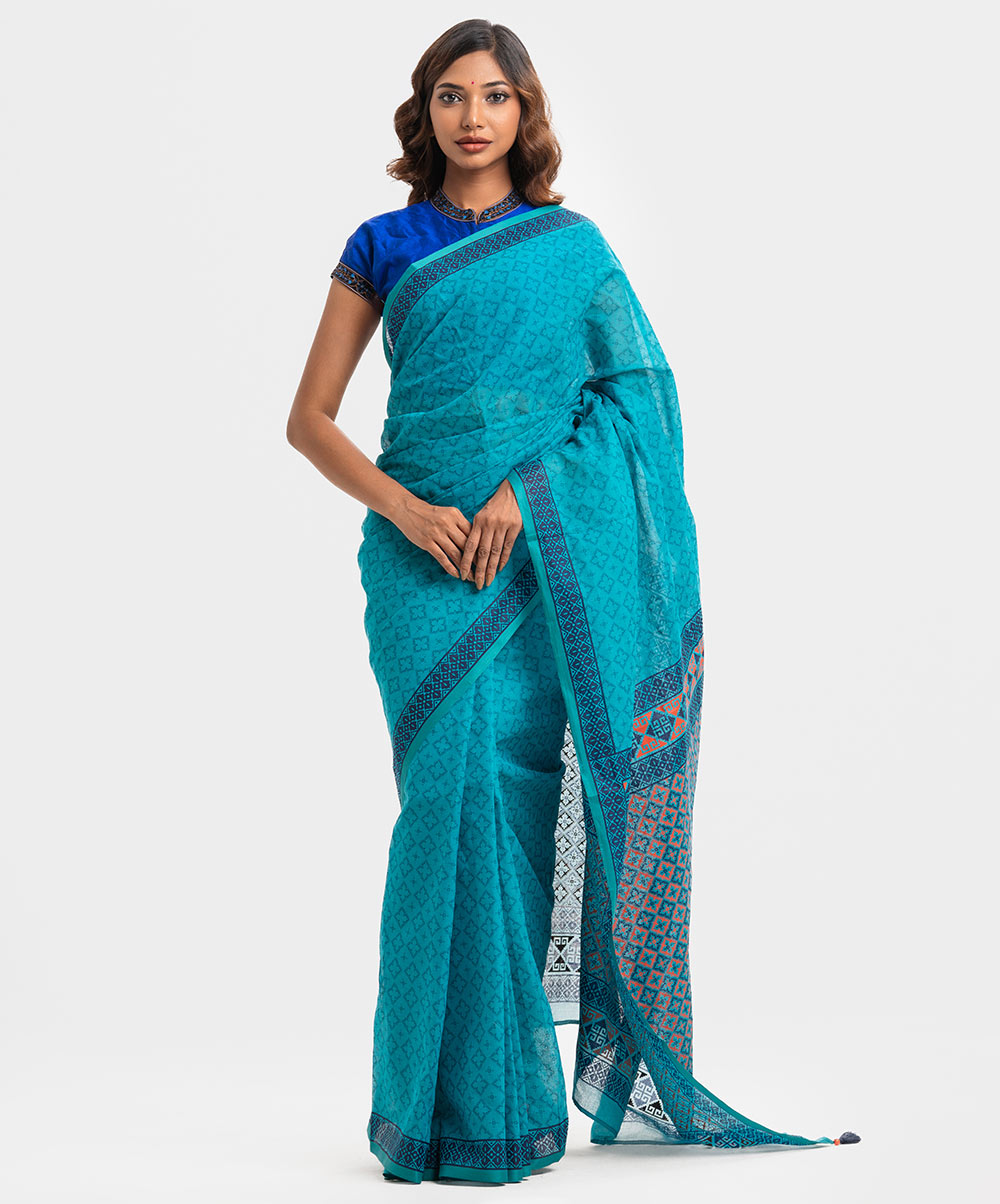 Teal Green Cotton Saree