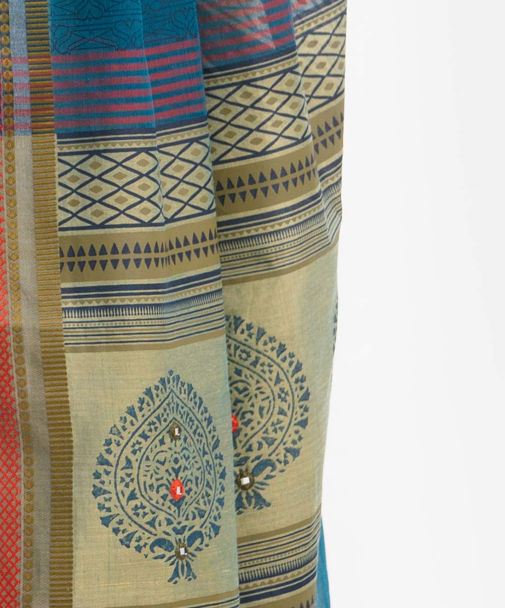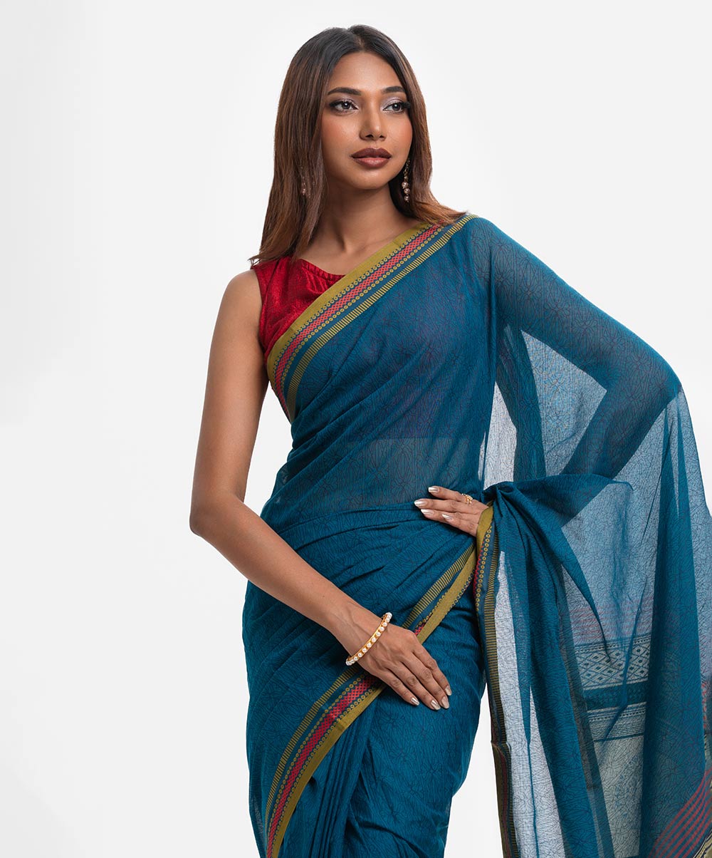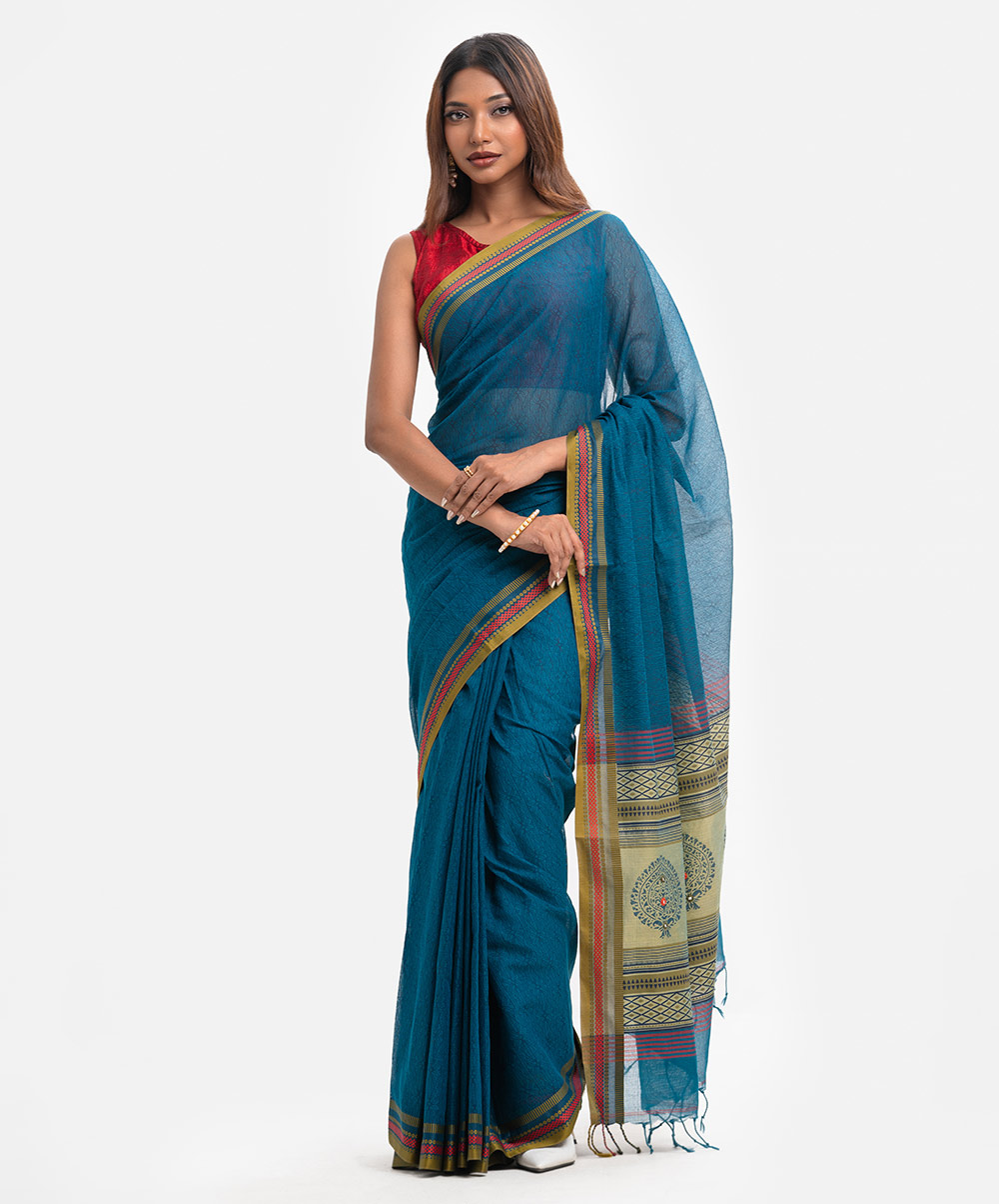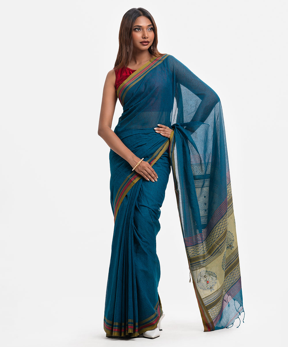 Women’s cotton saree with weaving details.
