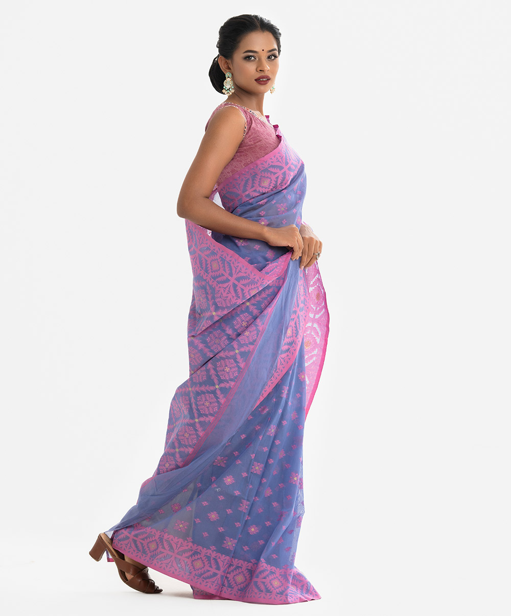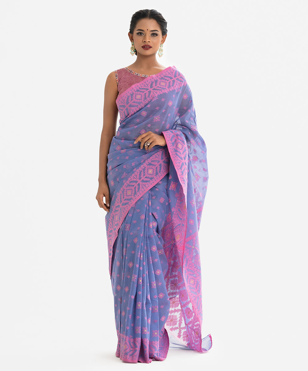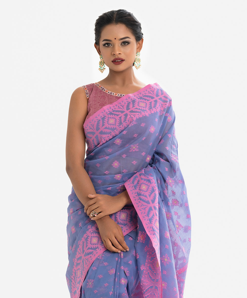 Women’s ethnic themed cotton saree with weaving details.