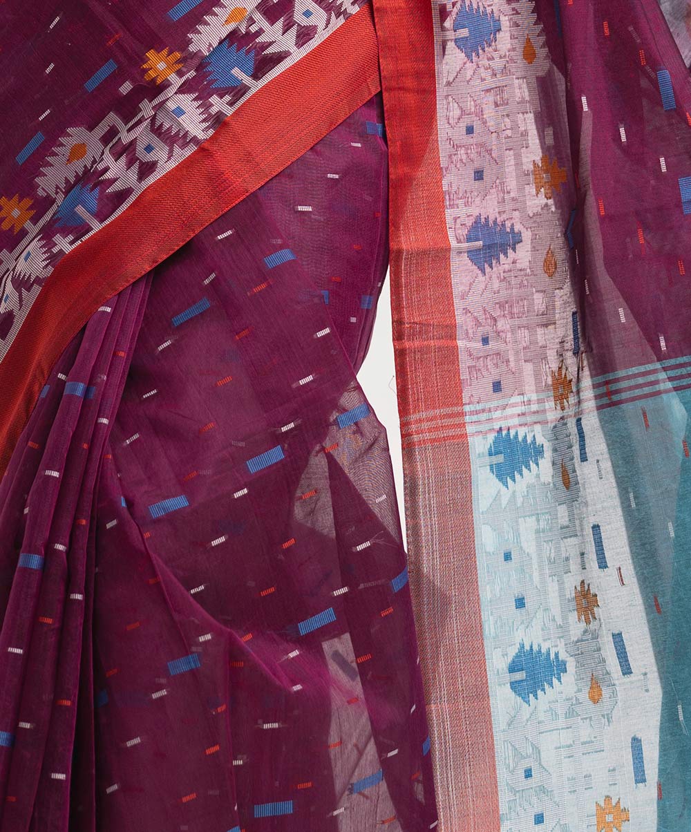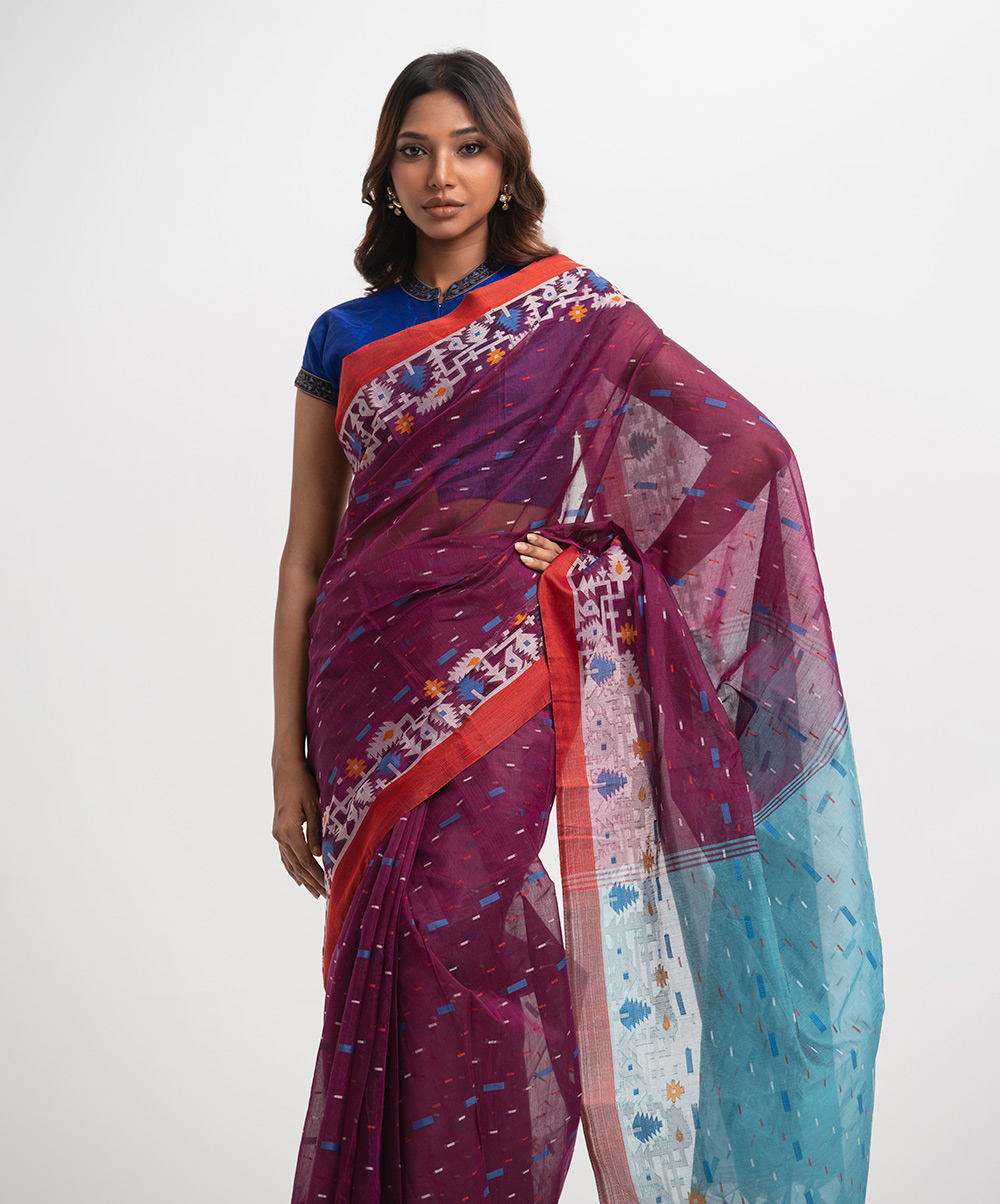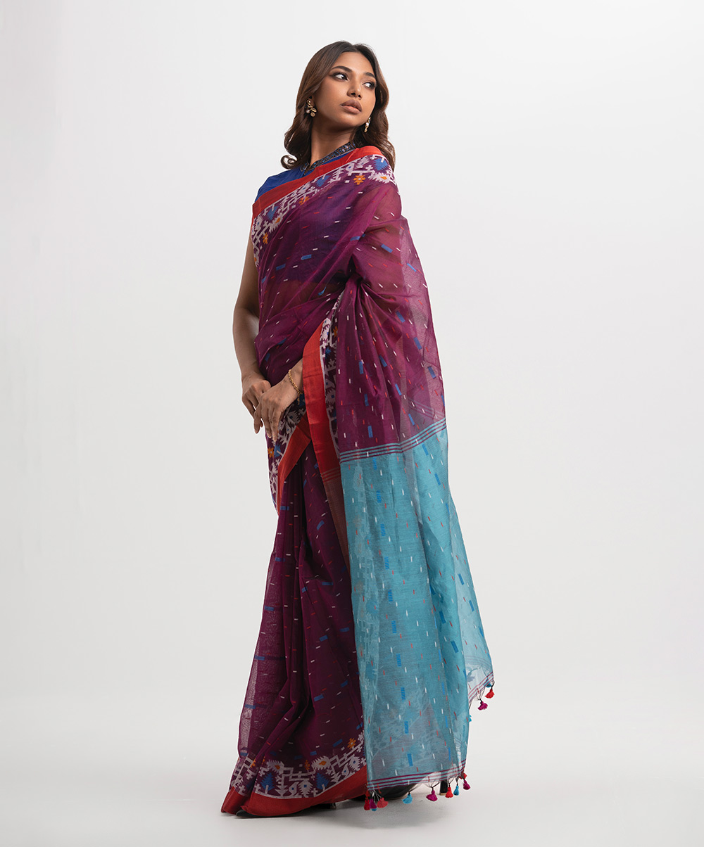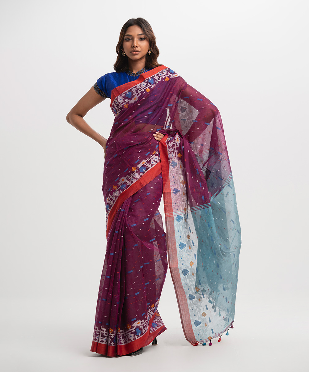 All-over weaving details half-silk saree, embellished with tassels at the border of Aanchal.