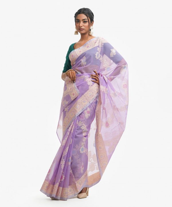 All-over weaving details saree in half-silk fabric. Zari details at the Aanchal.