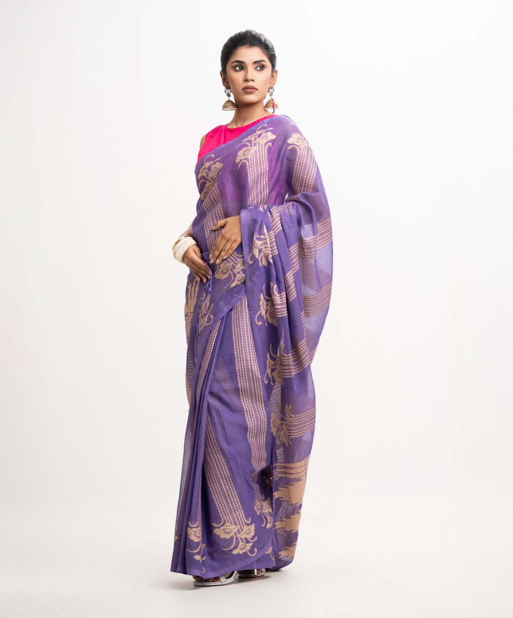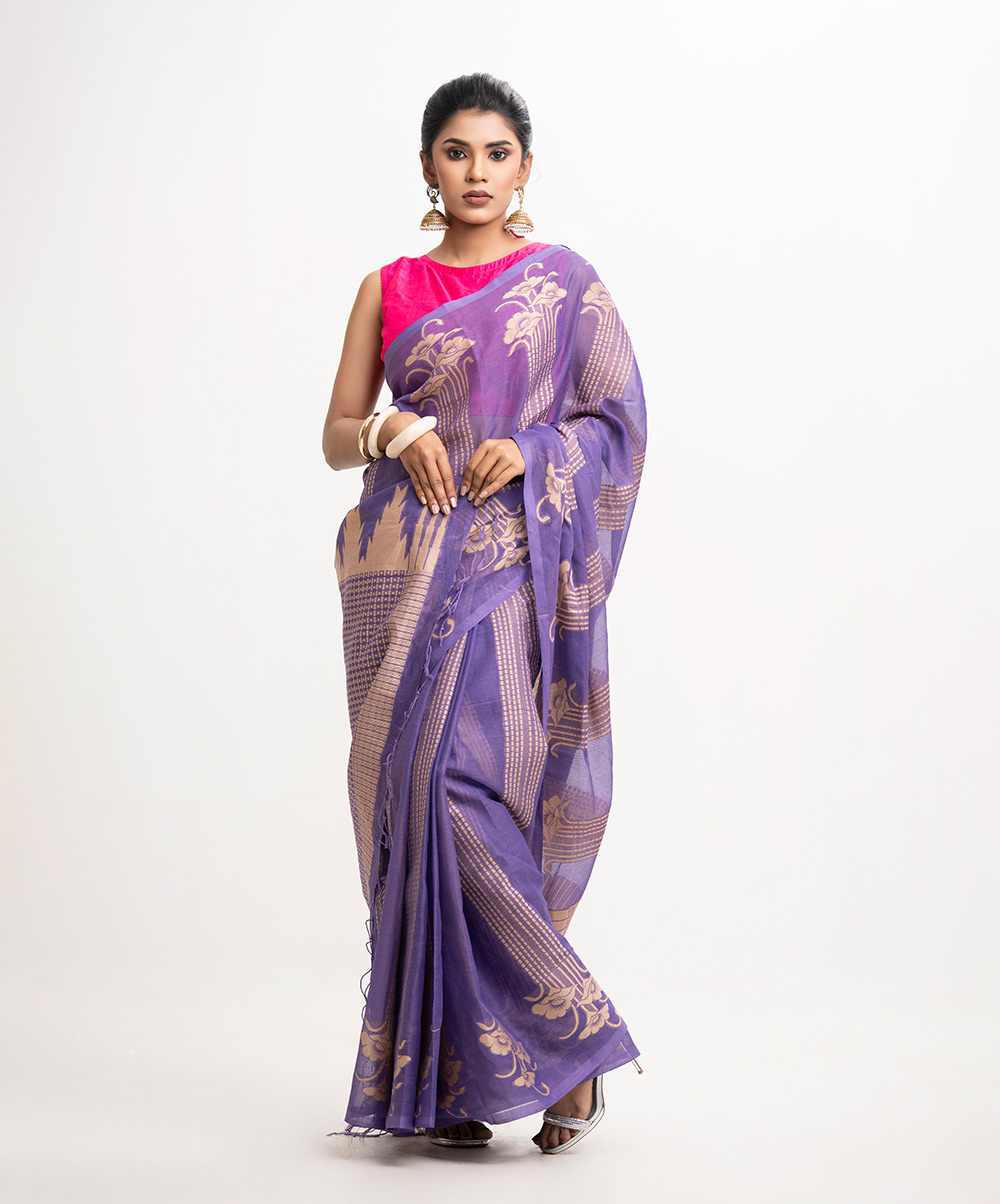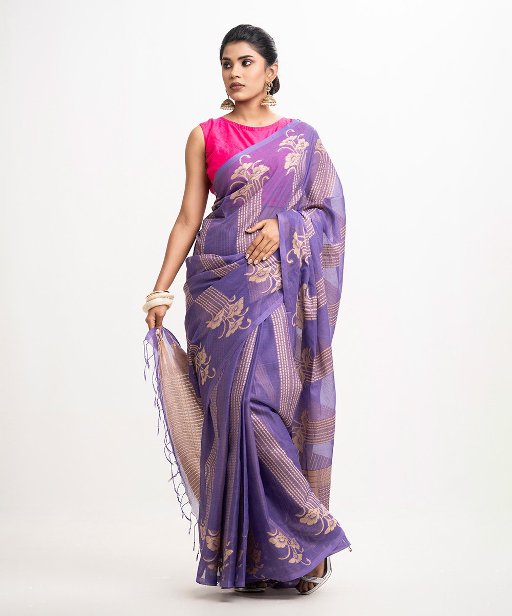All-over weaving details saree in cotton fabric. Fringe trim at the Aanchal.