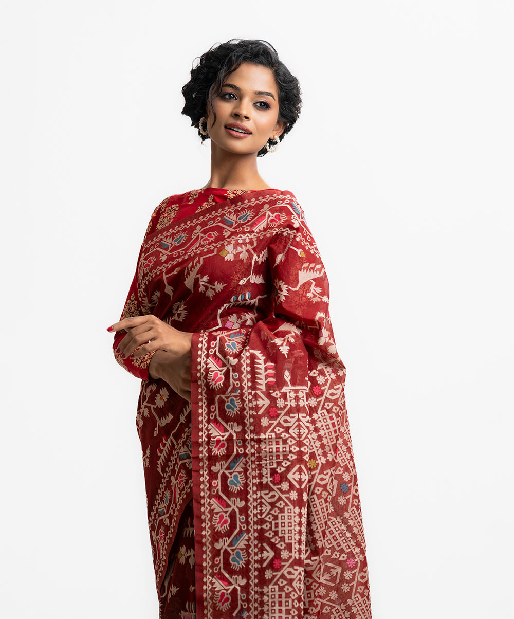 Maroon Half-silk Saree
