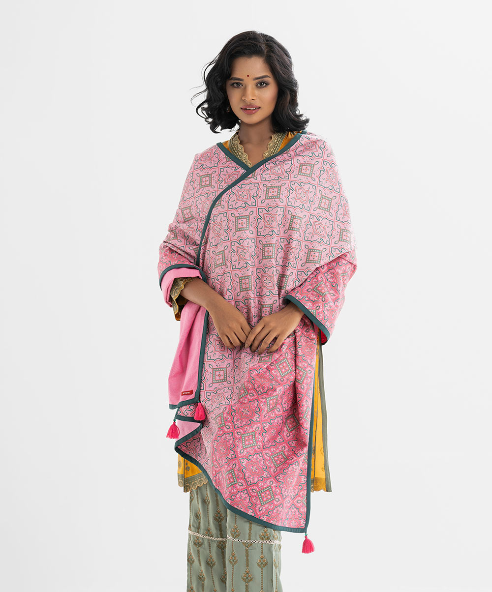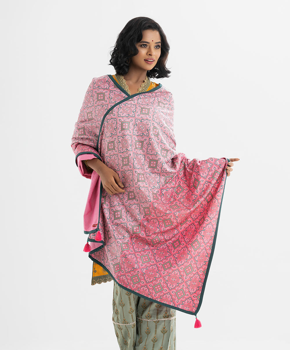 Women’s printed winter shawl in viscose fabric. Comes with tassels at the border.