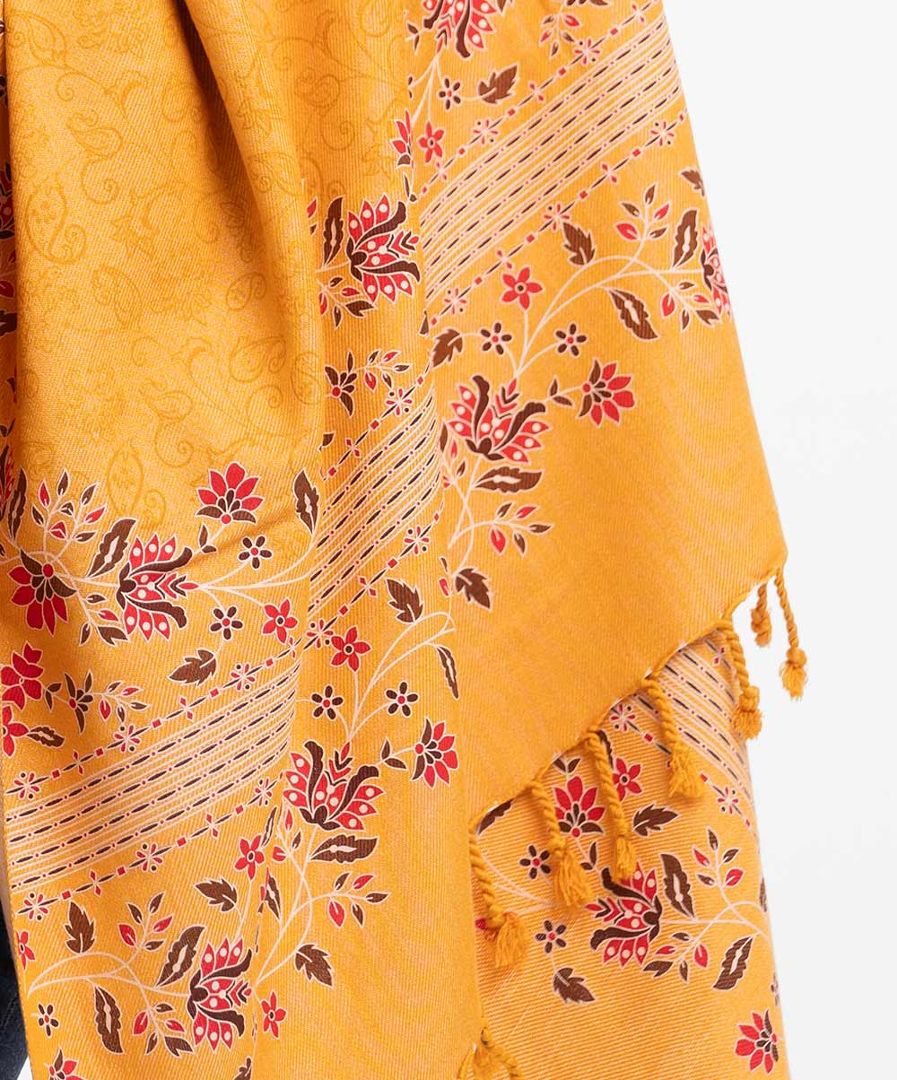 Golden Viscose Printed Shawl