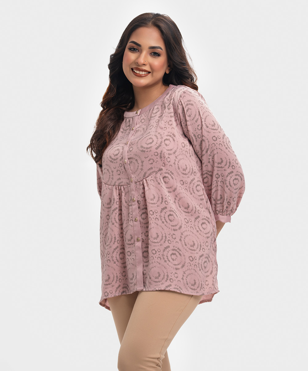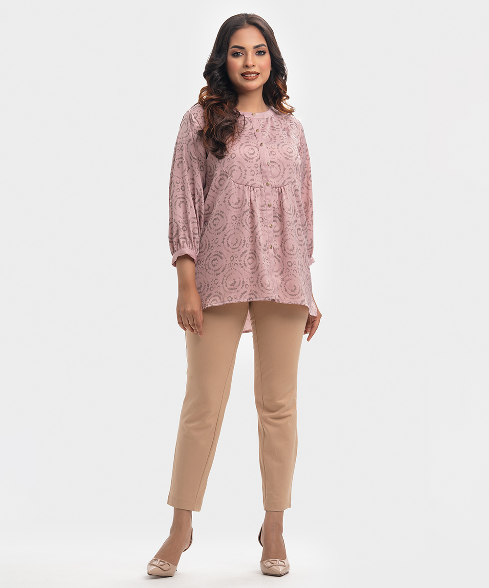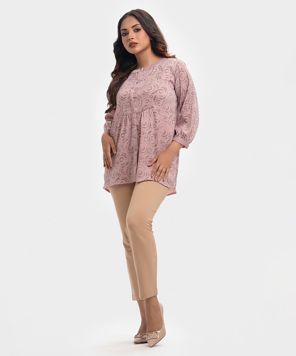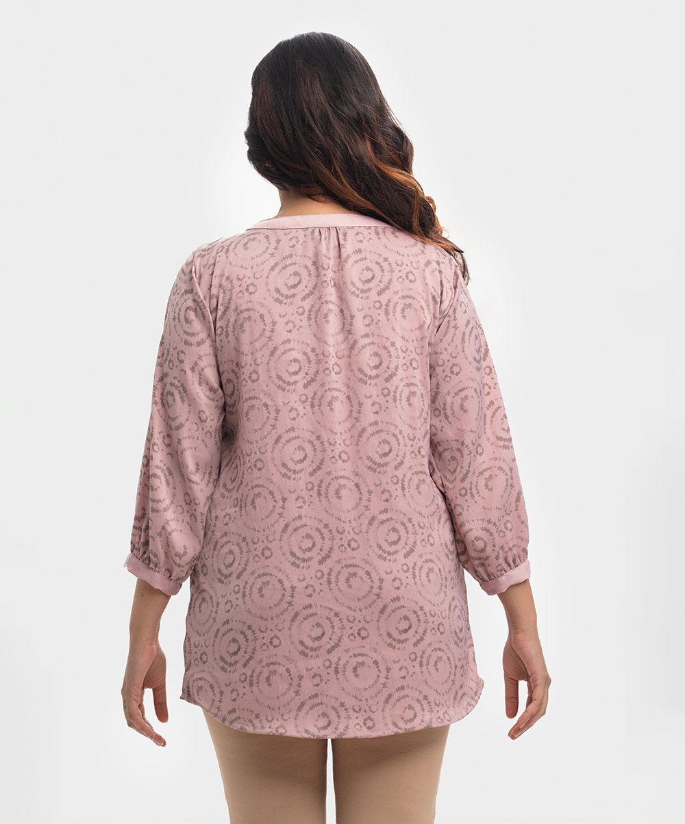 Pink & Gray Georgette Patterned Shirt