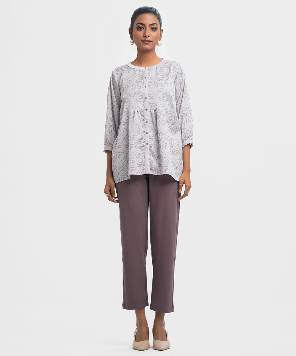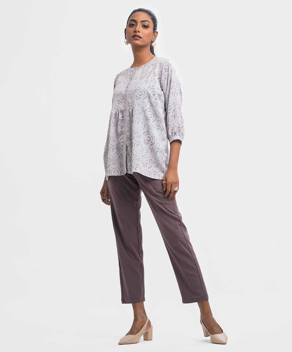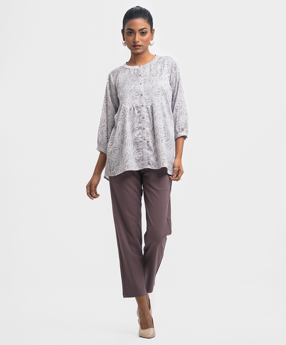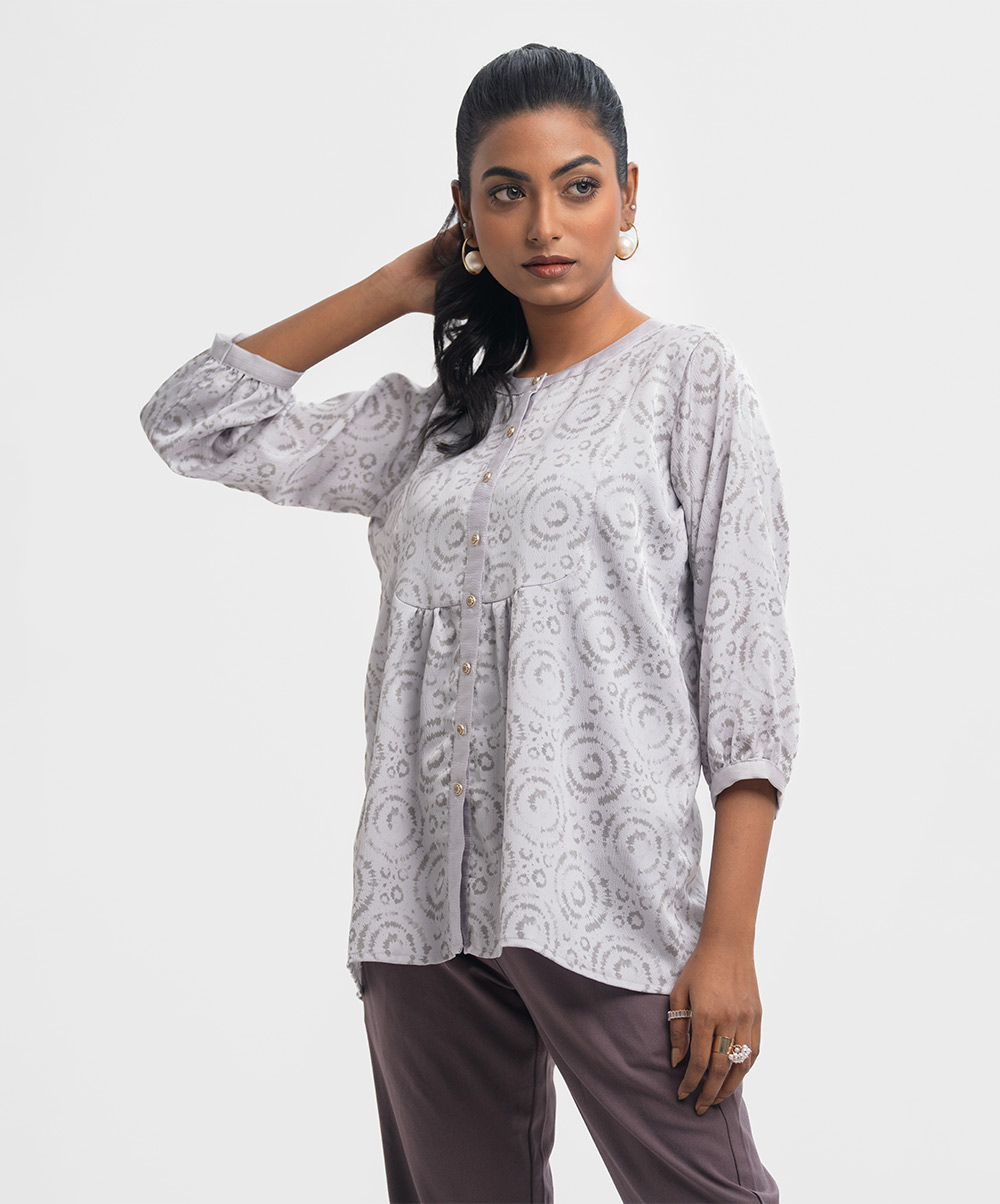 Pink & Gray Georgette Patterned Shirt