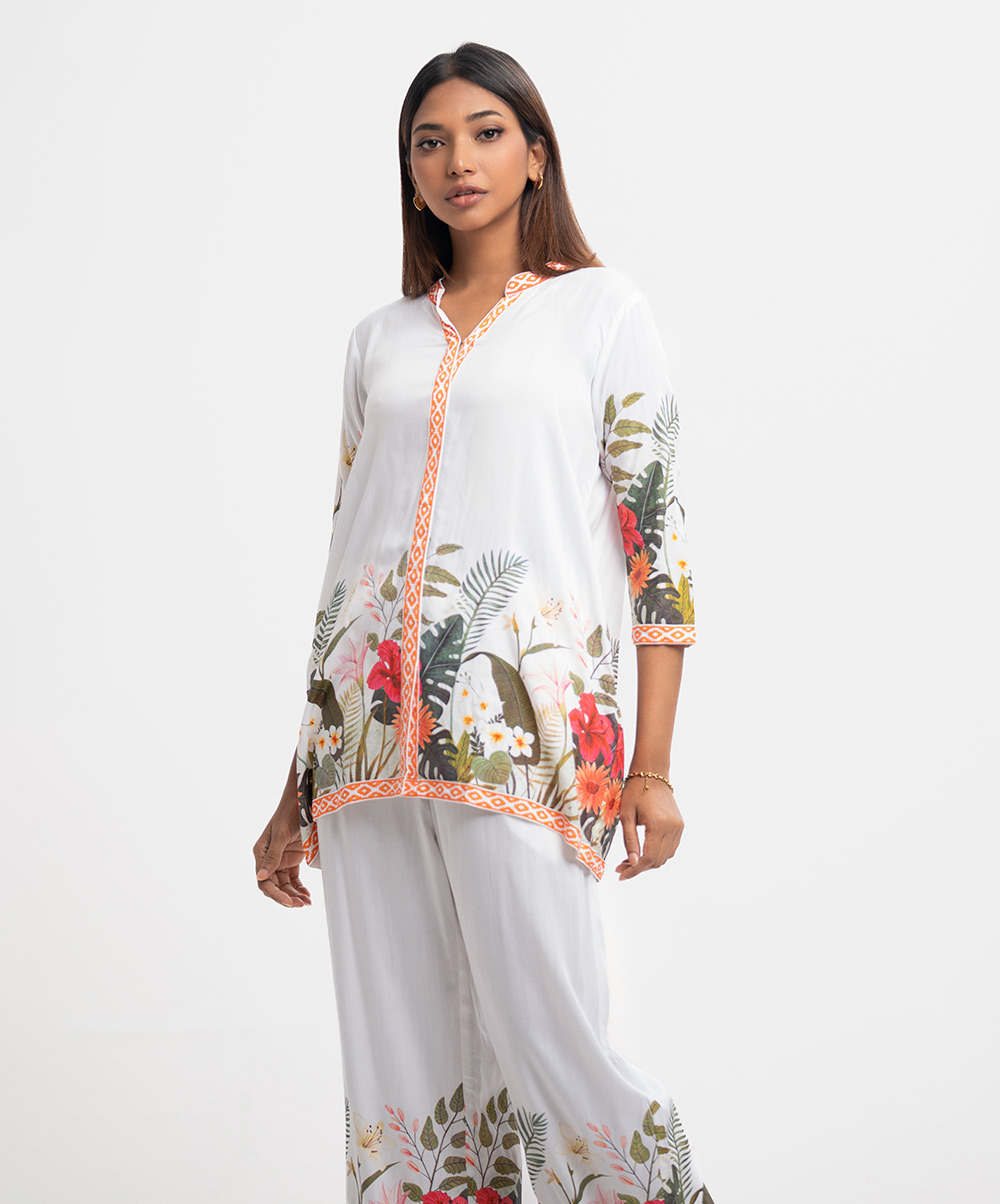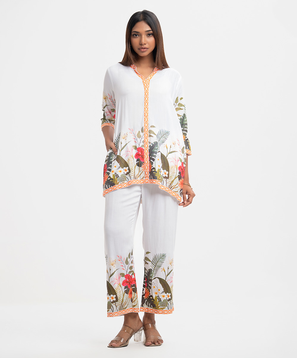 White Viscose Top Bottom Set